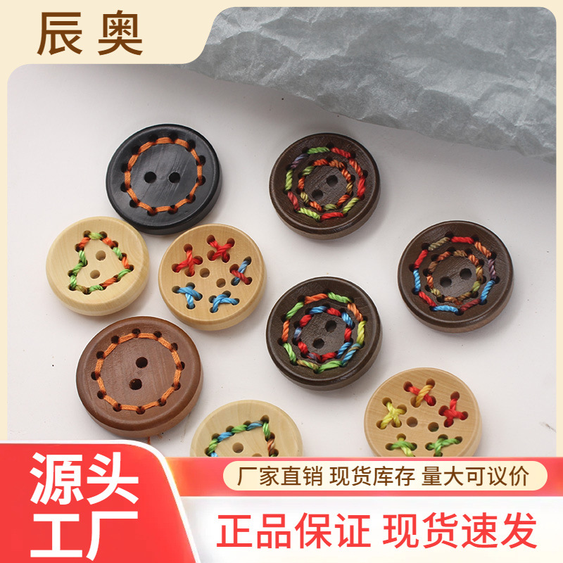 メーカー直販特価卸売り手作りdiy補助材料木ボタン紡織補助材料はカラー線木ボタンを着ている