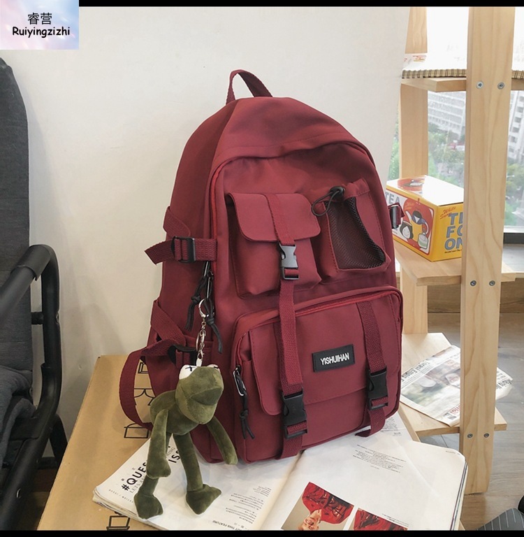 Ins日系少女かばん女子韓国版中学生かわいい純色バックパック高校学生大容量
