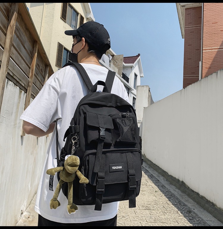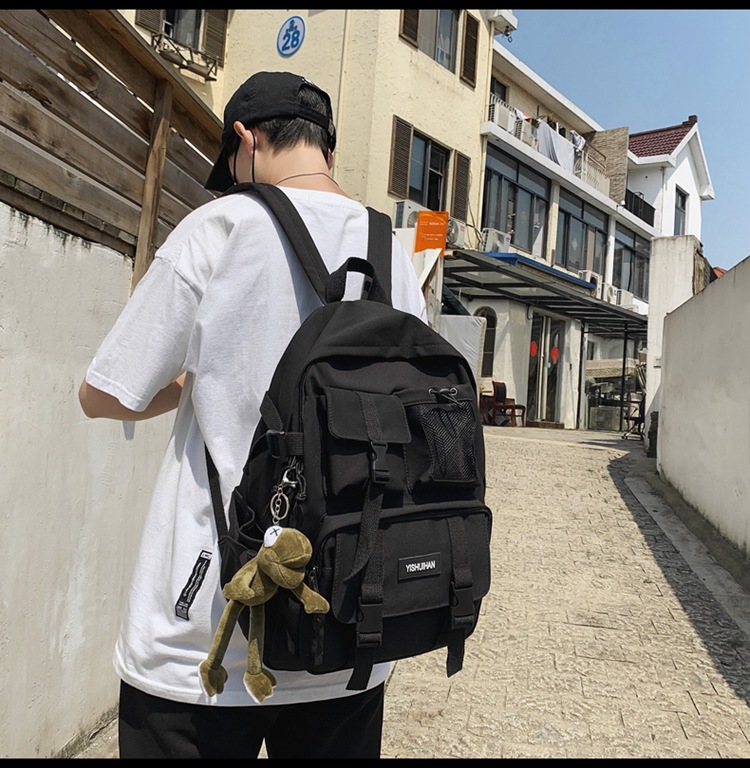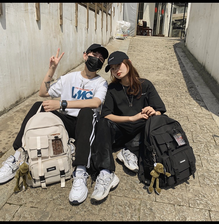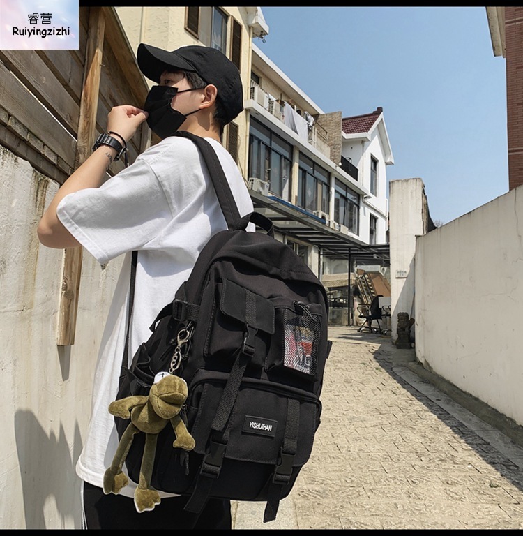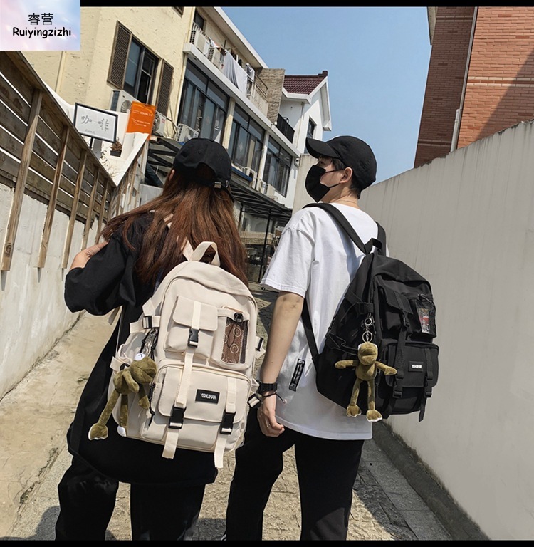 日本のトレンディでクールなレトロなワークウェアバックパック韓国語版原宿オル高校男子大学生スクールバッグ女性バックパック