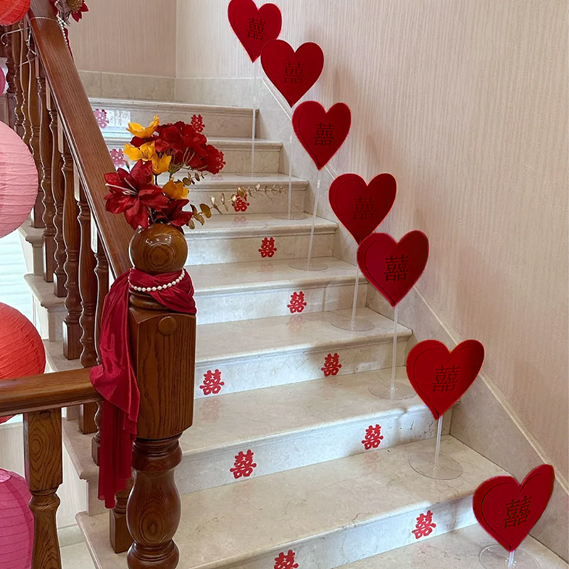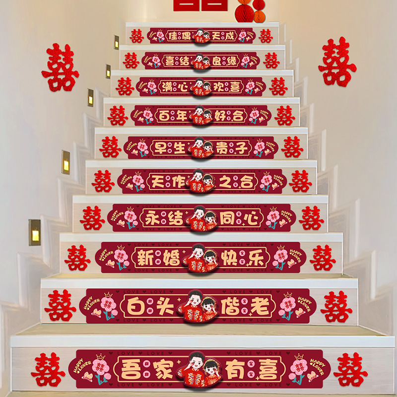 ウェディング用品大全階段喜装飾結婚式配置喜字婚房貼りガラス門結婚階段喜字貼り