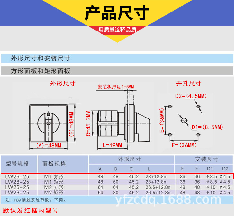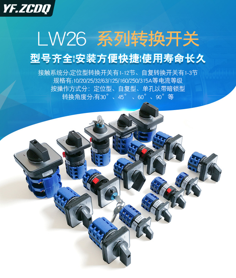 LW26-20/2取付ケース付き万能切替スイッチモーター逆順ダブル電源切替防水表面取付