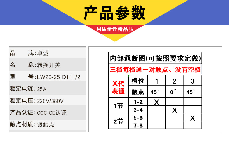 万能変換スイッチLW26-25 d111/2 3速単線3路電源圧切替単刀3投25a