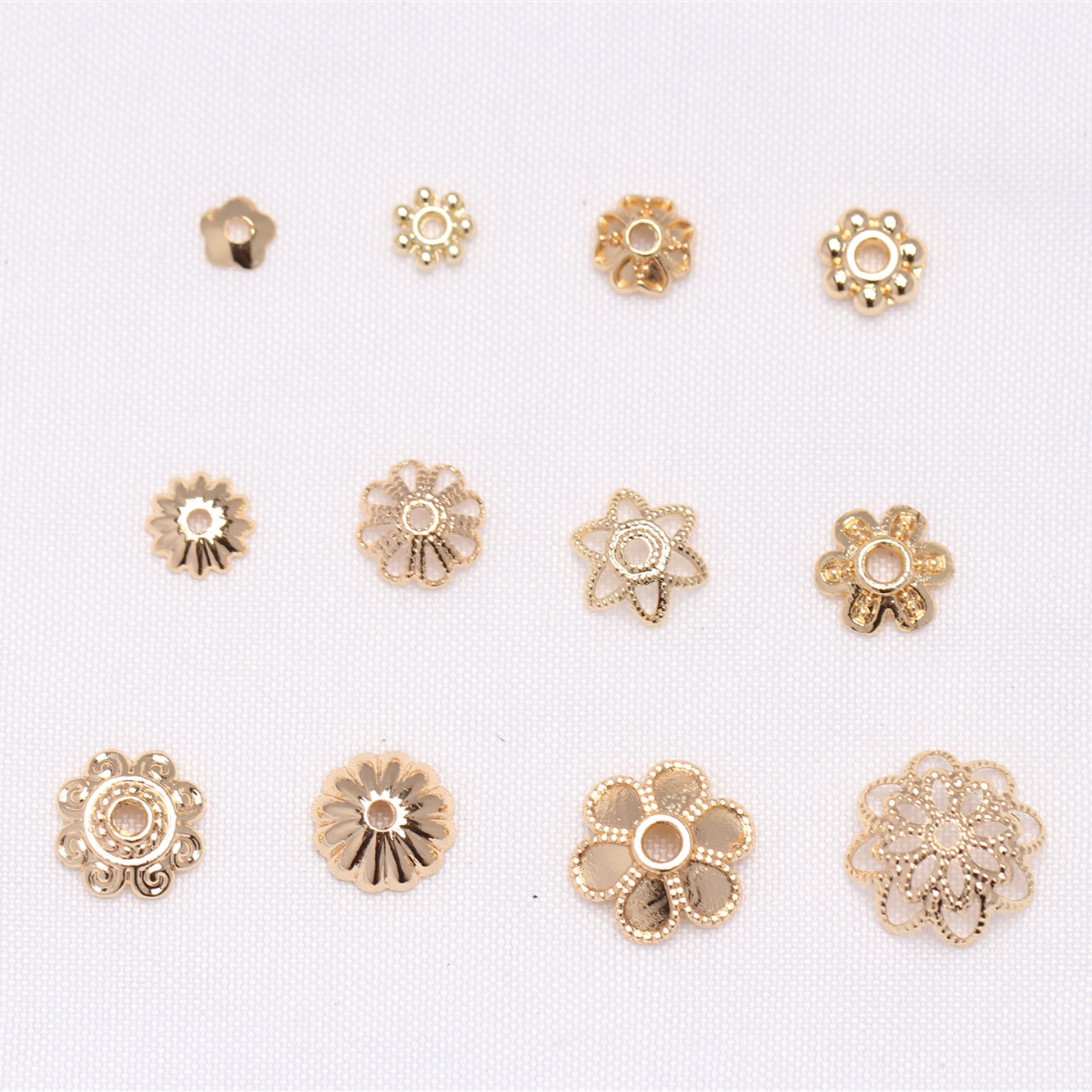 14k/18kバッグ金色保色花托透かし彫り花びらdiyブレスレット部品隔珠花帽材料