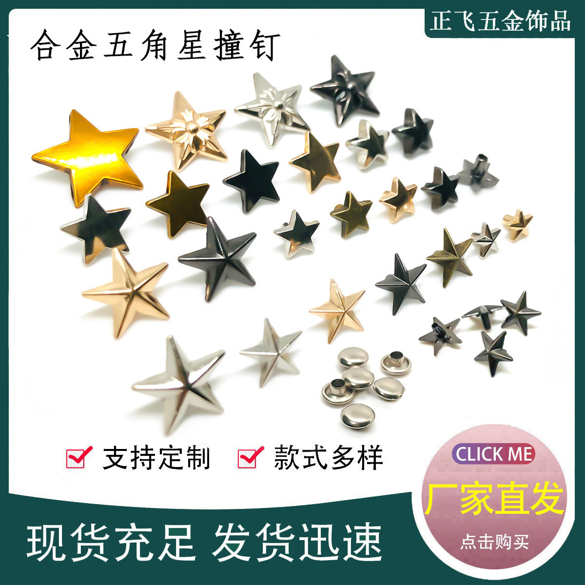 五芒星合金リベットスポット卸売 diy 衣類靴バッグ金属アクセサリーフラット凸五芒星リベット