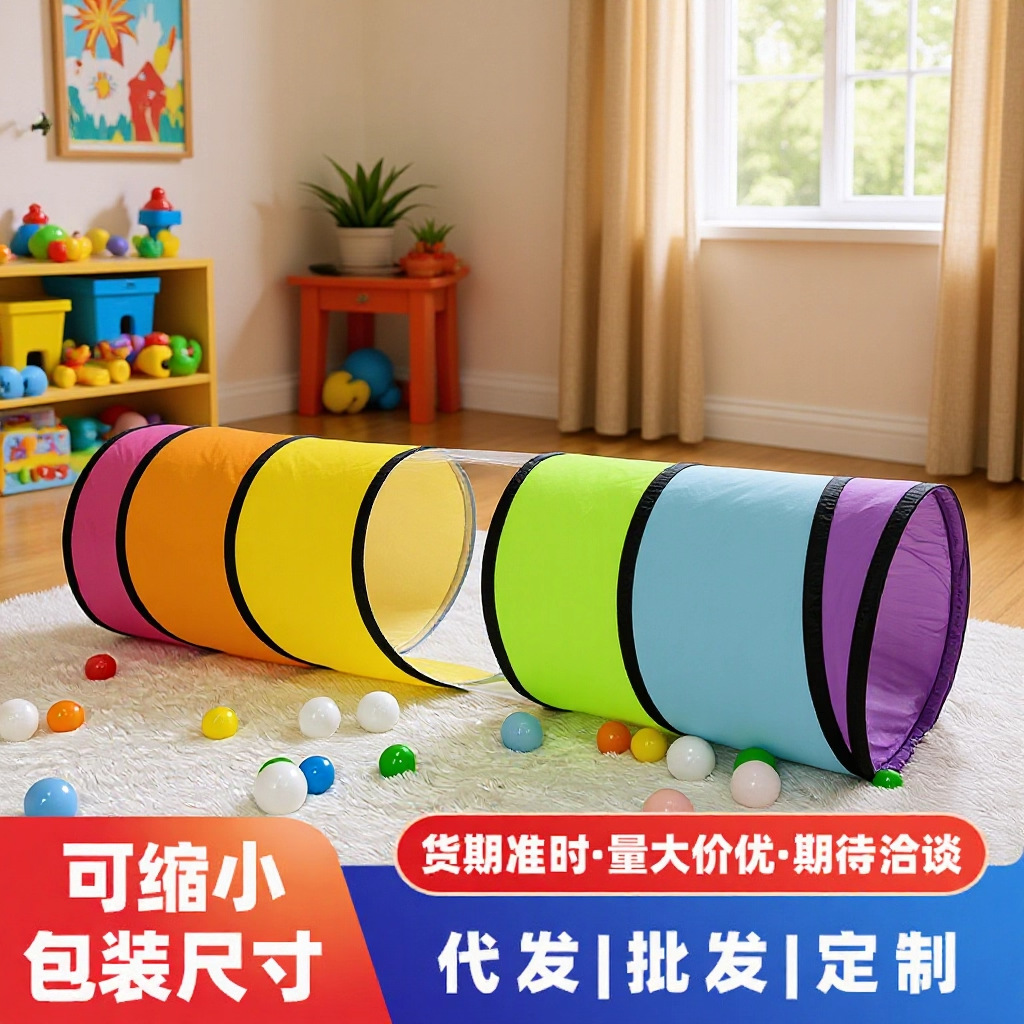 儿童爬行通道毛毛虫红黄蓝隧道宝宝幼儿户外体育体感训练钻洞玩具