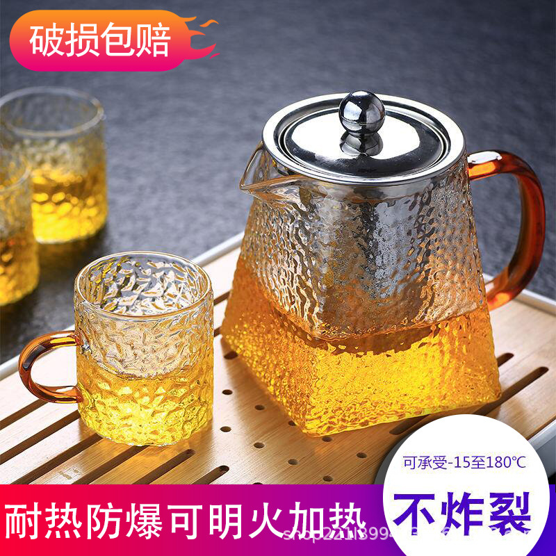 耐熱槌目ガラスティーポット家庭用フィルター式ティーメーカー厚手ティーポットティーカップセット沸騰水ティーセット