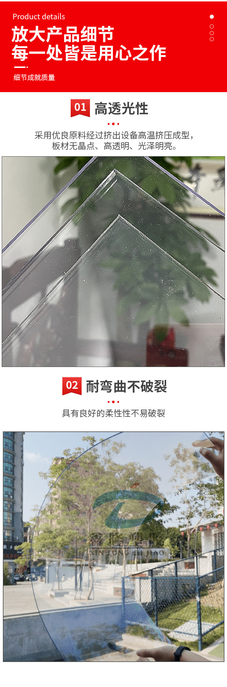 高透明PETG板カスタム耐高温PET PVC PCシート加工プラスチック硬シート雨棚材料