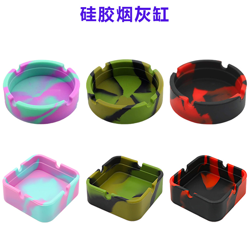 在庫あり 丸型/四角型 ポータブル 耐衝撃 耐高温 洗浄簡単 家庭用/バー用 タイダイ柄 光るシリコン灰皿