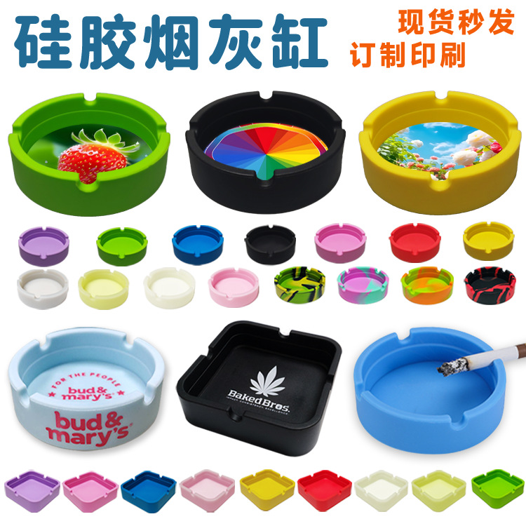 印刷ロゴ入りシリコン灰皿、夜光効果、耐高温、落下防止、丸型、家庭用、バー用シリコン灰皿