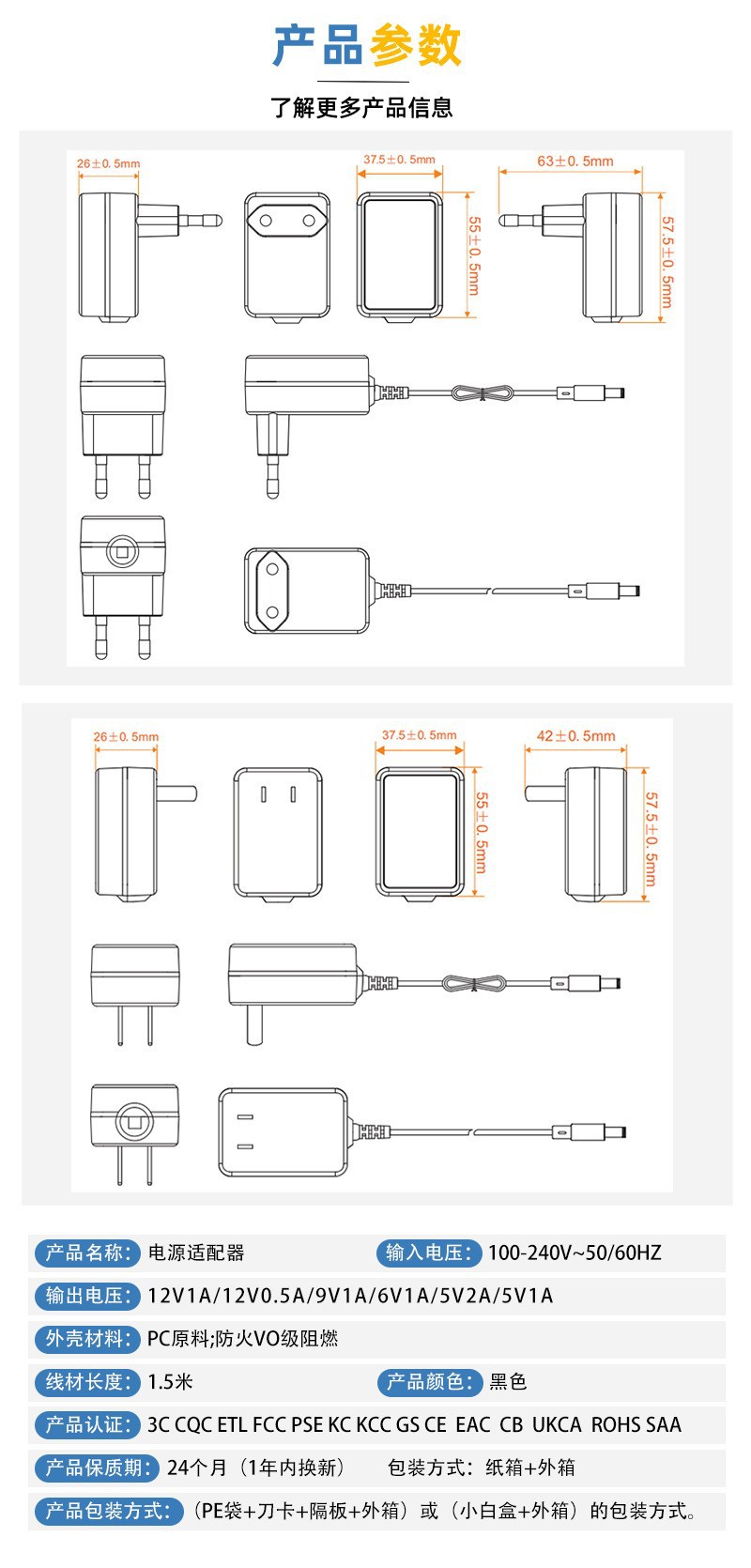 12v1a電源アダプタceヨーロッパ規格5v2a中3c認証kc充電器美規格9v1a電源アダプタ