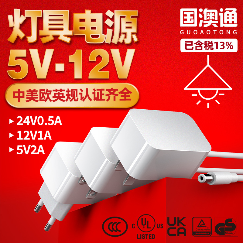 12v1a/5v2a/24v0.5a灯具电源3C/UL/GS/UKCA认证多国LED电源适配器