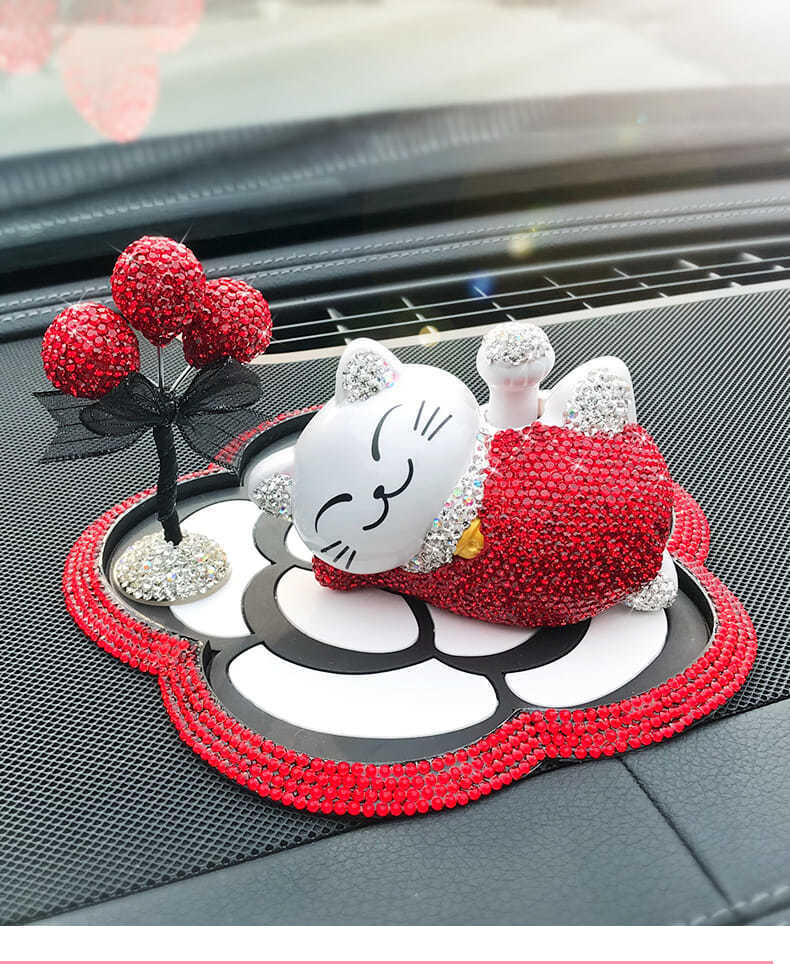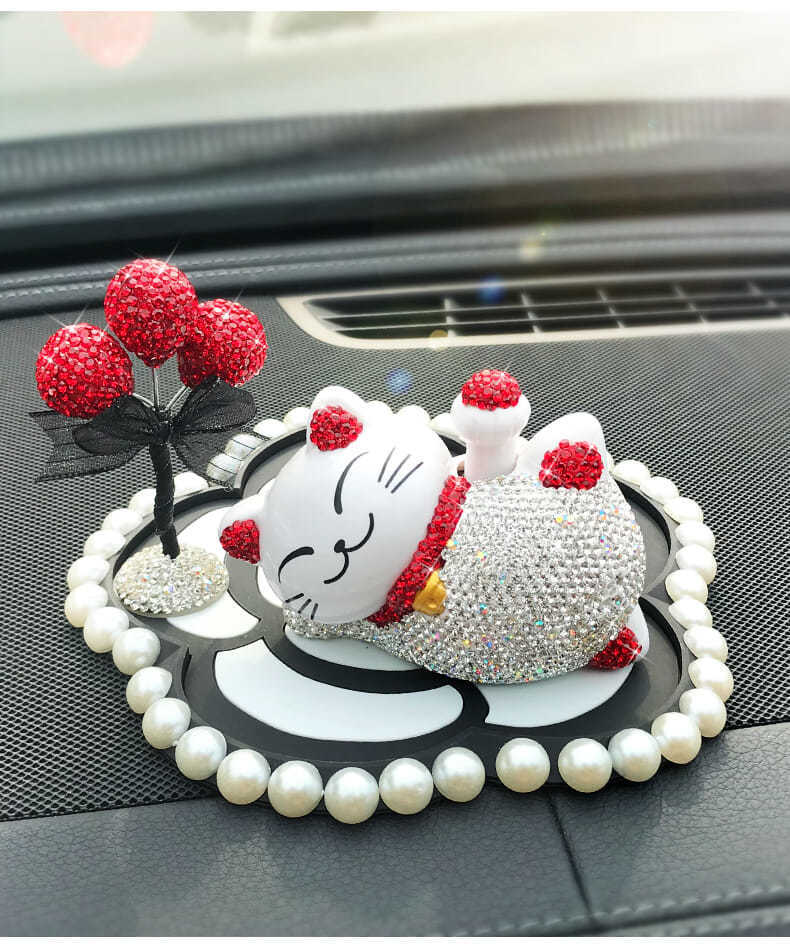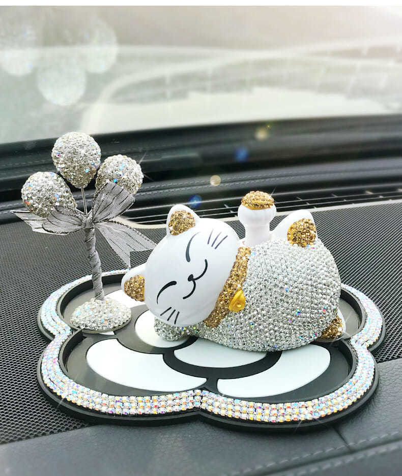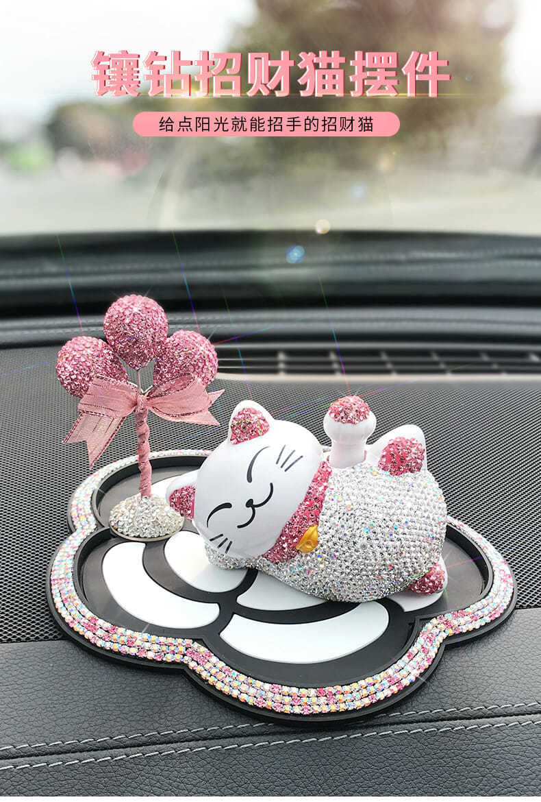 太陽エネルギー招き猫の車内の装飾品は車の香水の女性の創意的な車の用品を飾ってダイヤモンドのかわいい個性を入れます。