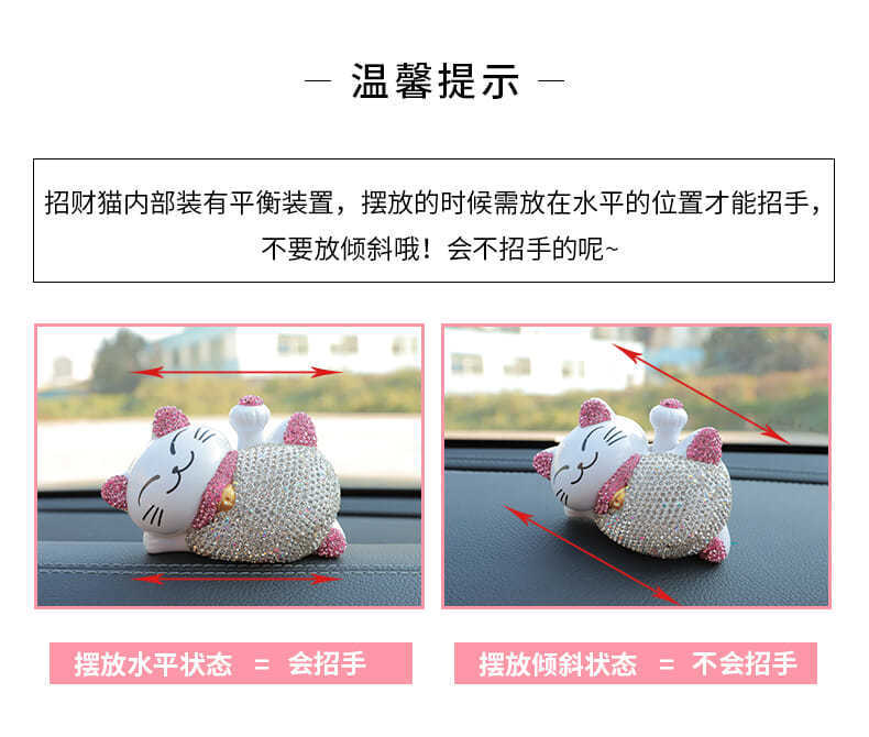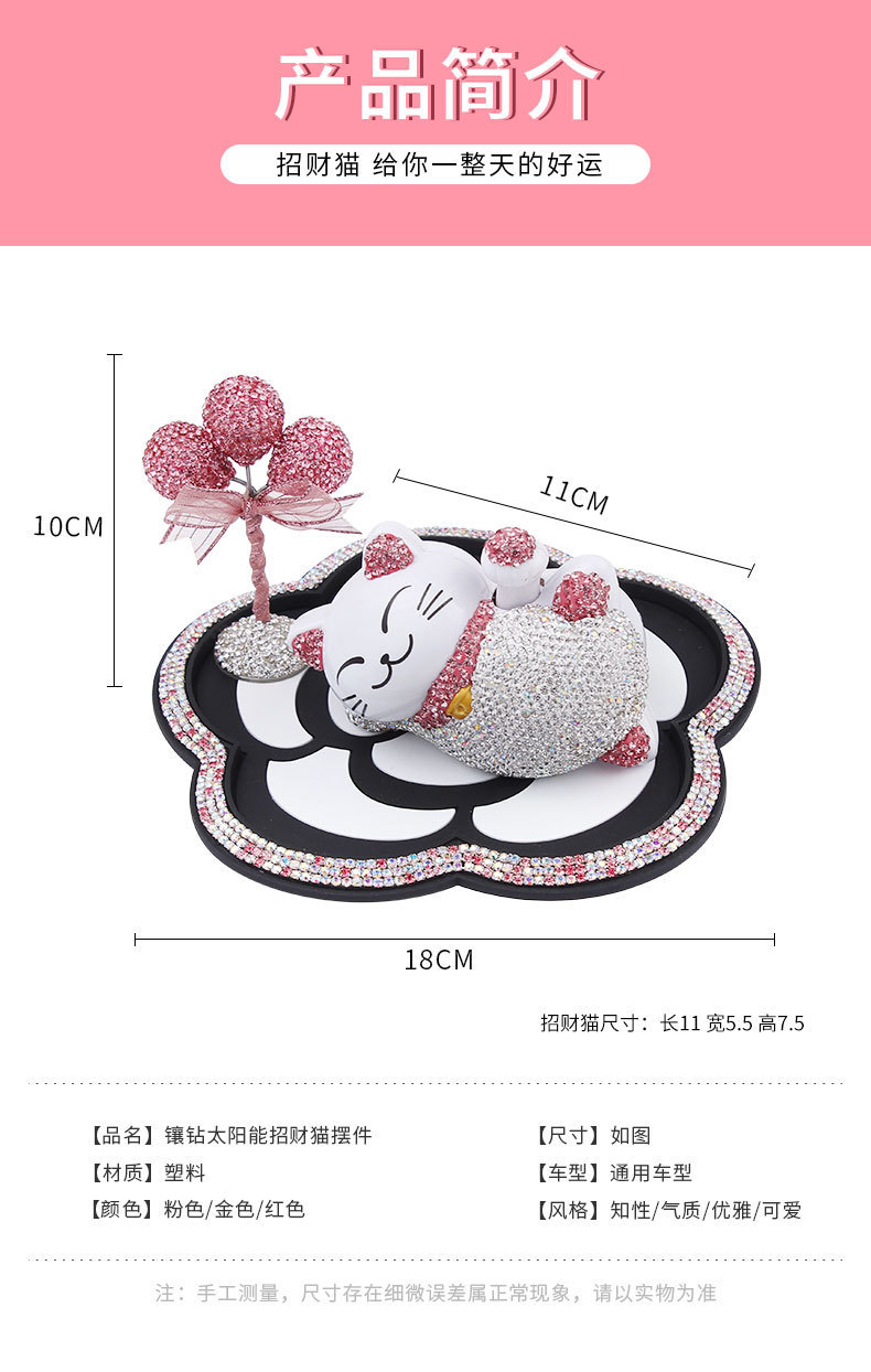 招き猫の車の置物ファッションには、かわいいスタイルの招き猫の太陽エネルギーが輝いている招き猫の置物が入っている