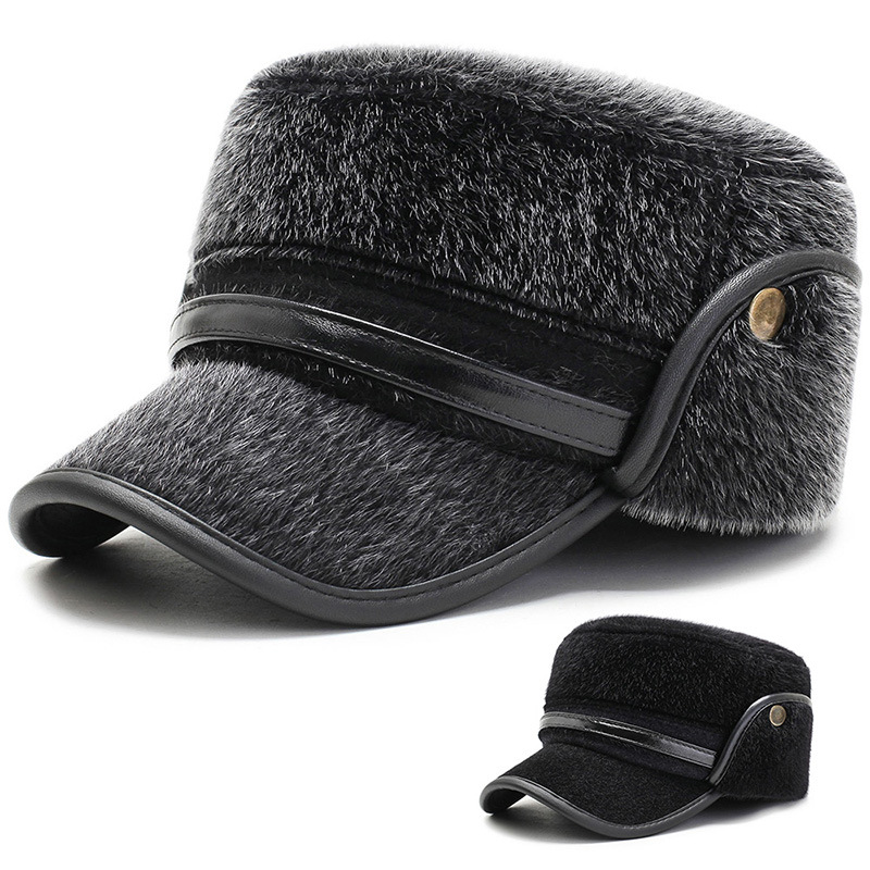 中高年向け冬用帽子、裏起毛、平型帽子、韓国風おしゃれ、耳当て付き、ひさし付き帽子、お父さん用防寒綿帽子