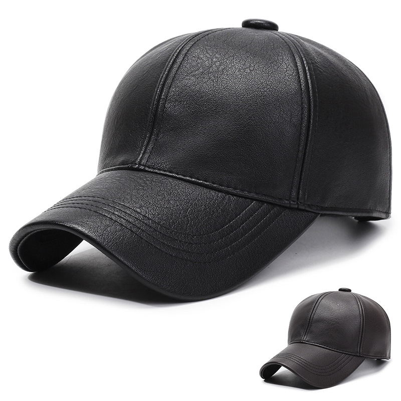 新款男士皮帽秋冬PU皮质纯色鸭舌帽加绒保暖中老年人皮棒球帽子冬