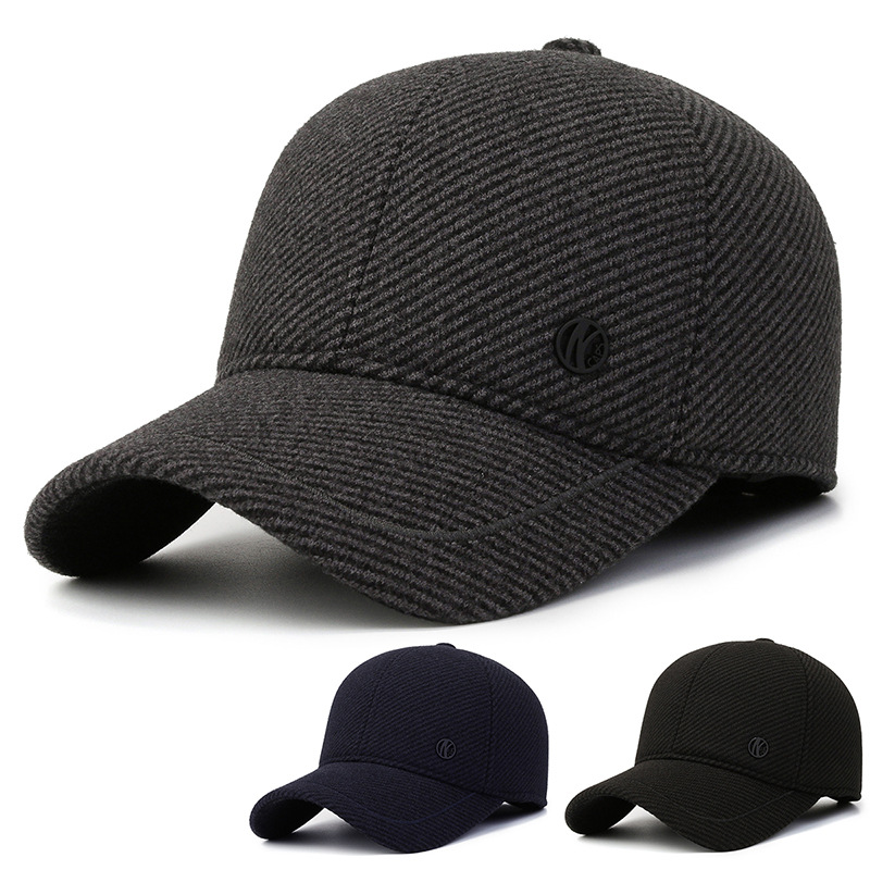 新型中高年縞平頂帽冬耳保護綿帽屋外レジャーベルベット保温男性鴨舌帽子