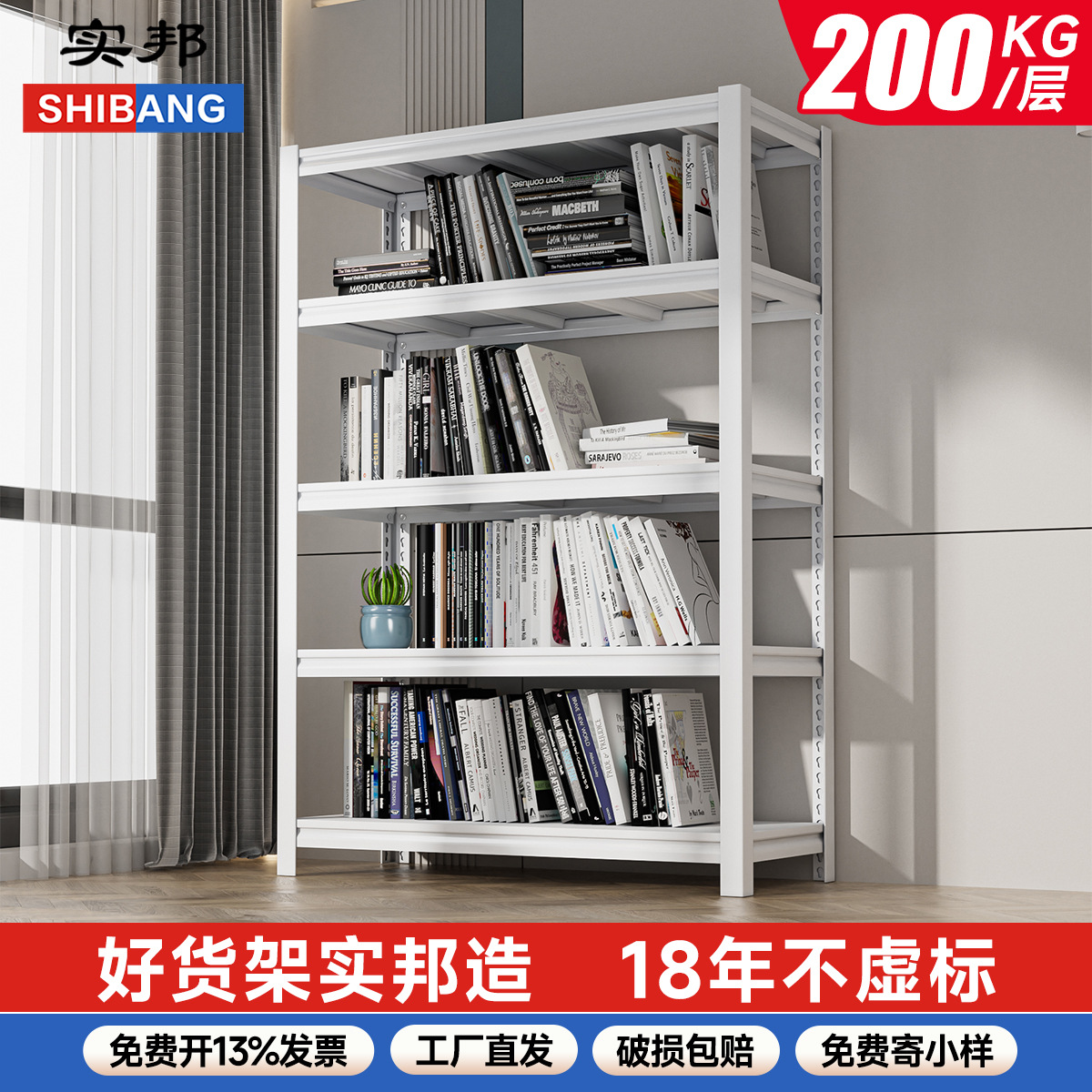 实邦货架 家用简约置物架 展示架 仓库储存收纳仓库货架