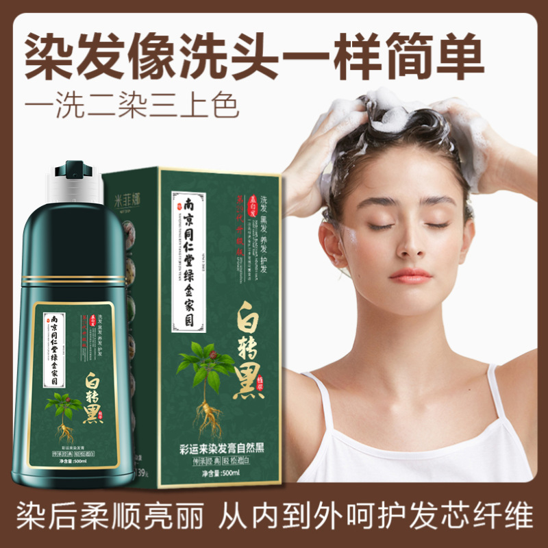 同仁堂一洗彩染毛剤植物正品天然シャンプー白髪泡無刺激クリーム一本黒