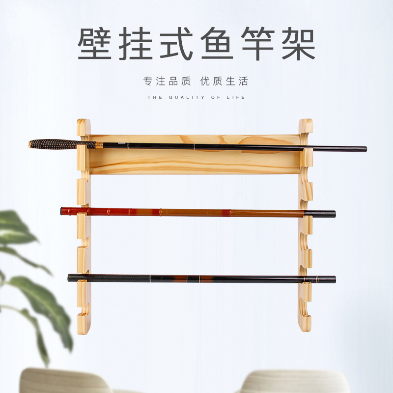 友聚思木製釣竿展示棚壁掛け式釣竿漁具スタンド釣り用品2色オプション