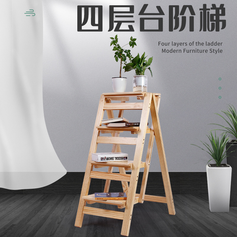 現代のシンプルな松木多機能家庭用はしごの実木は4階の階段の4色を折ることができます。