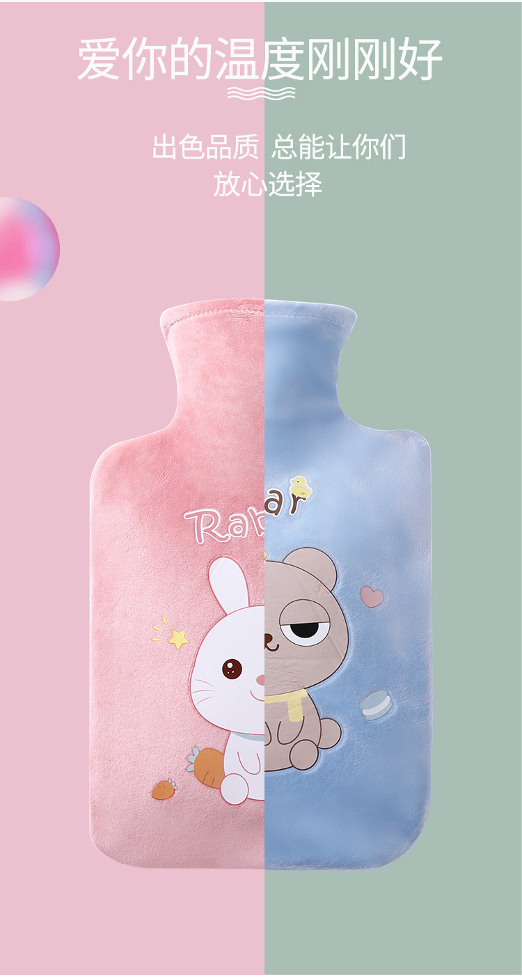 冬季学生热水袋注水可爱暖肚子大暖水袋卡通毛绒布套暖宝宝