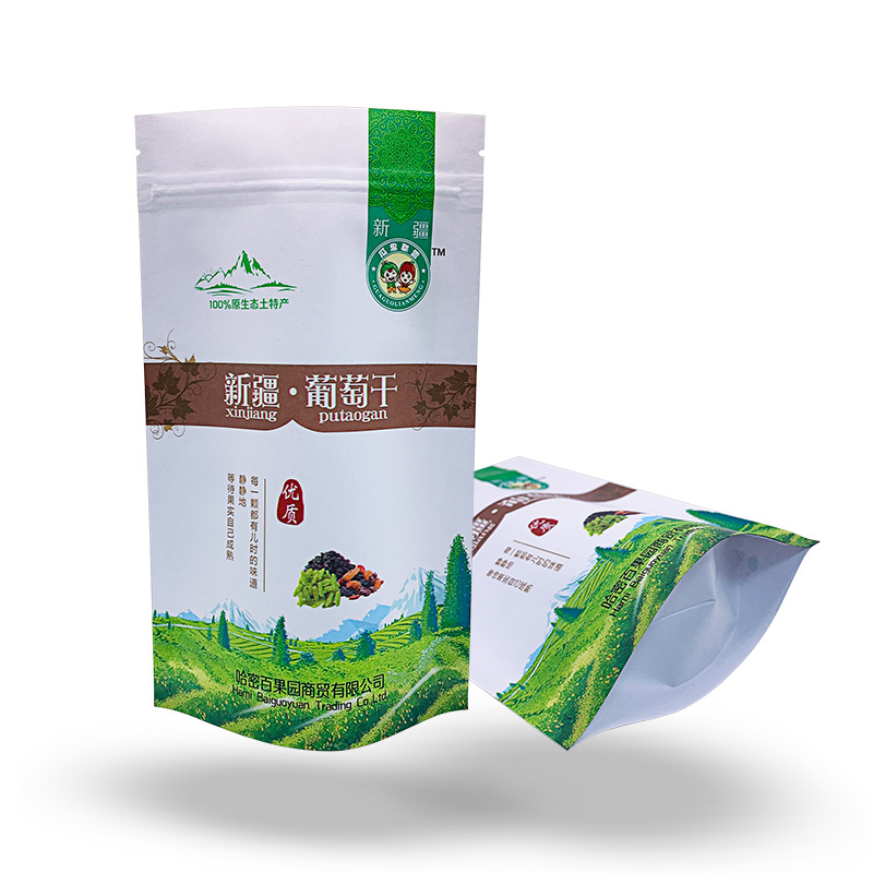 加工オーダーメイド食品包装袋レーズンスナック包装袋白牛革カラープリント複合袋