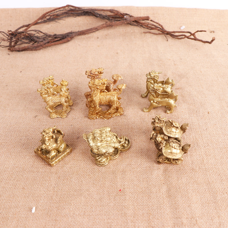メーカー卸売り母子亀銅小金ヒキガエル小金小対亀小麒麟置物
