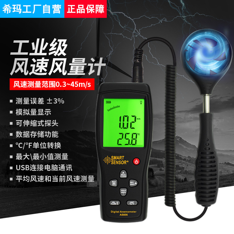 Xima 風速および風量計 AS856 ハンドヘルド風速計オンライン風速および風量風圧テスターパイプ風速