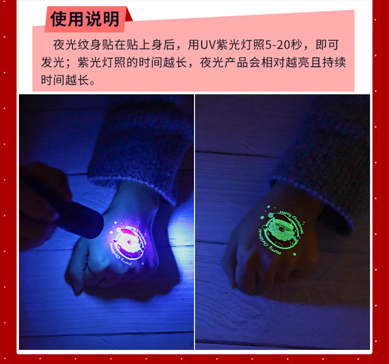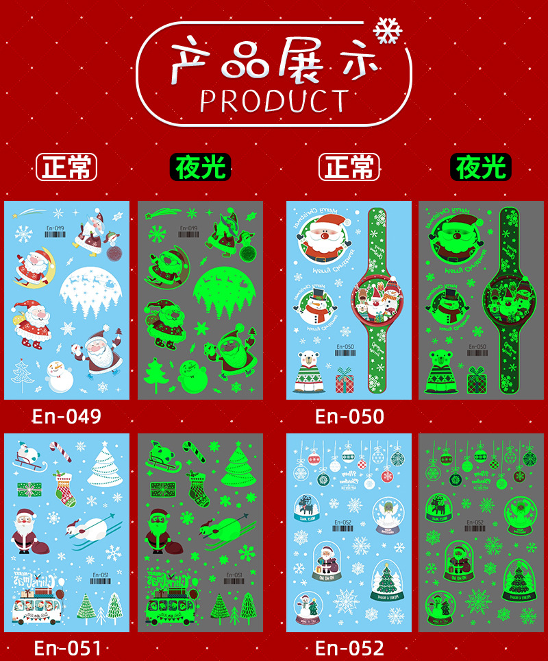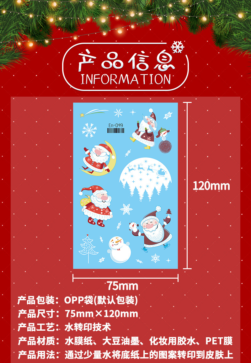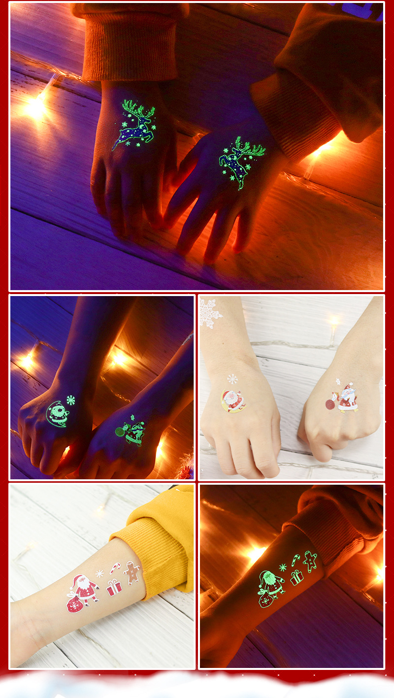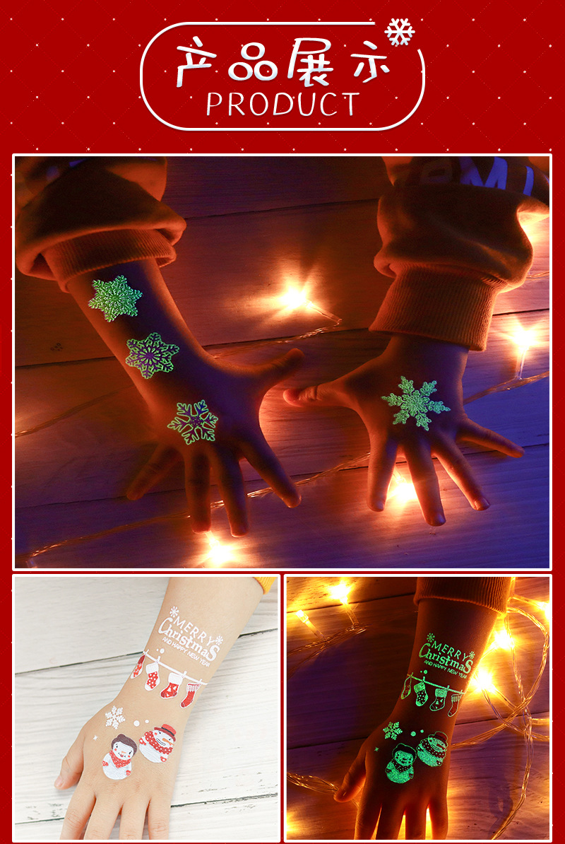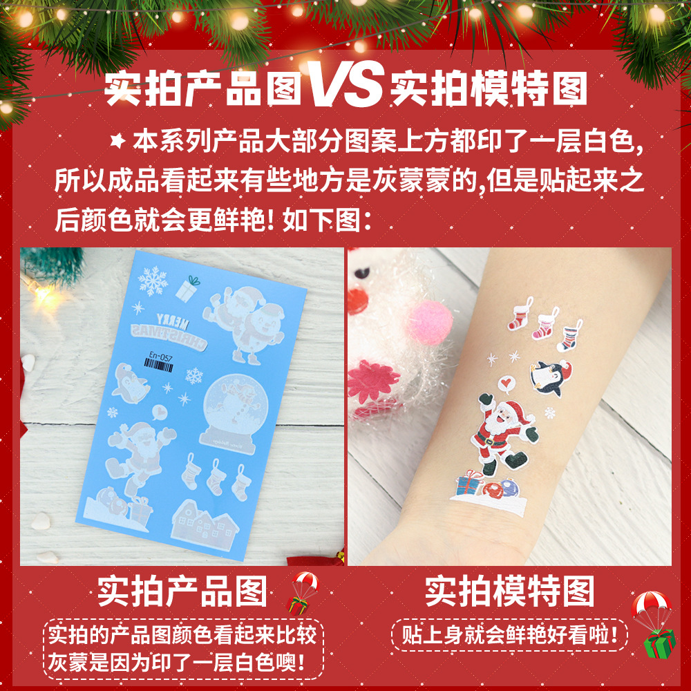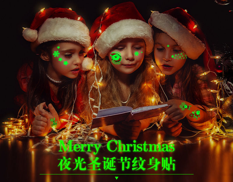 クロスボーダーの新しいクリスマスの夜の光の刺青は子供の漫画のサンタクロースの雪の刺青のステッカーの顔を貼って貼ります。