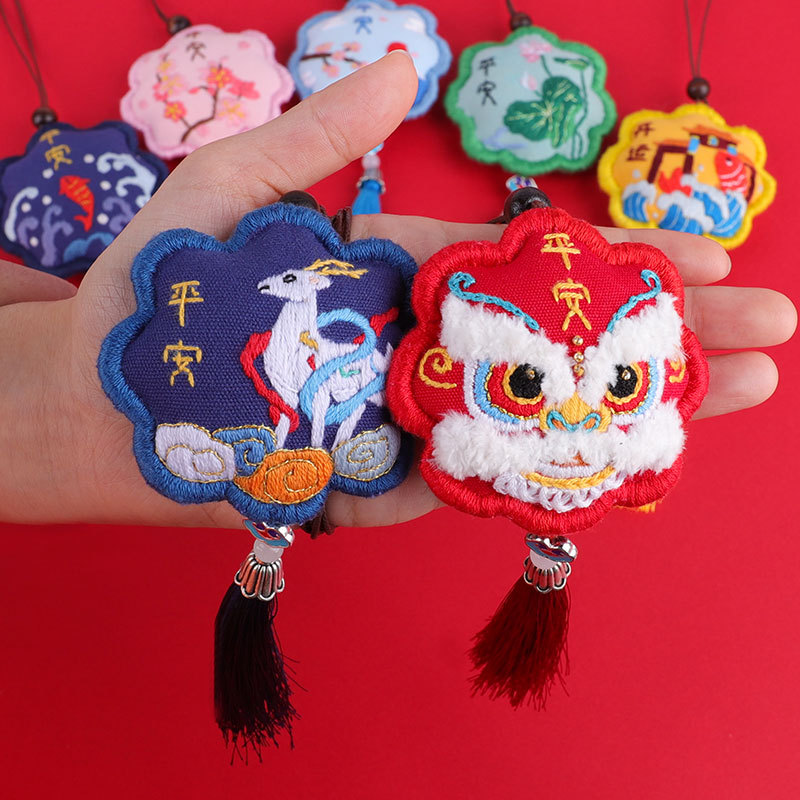 刺繍diy手作り自己刺繍御守平安符初心者材料包香嚢荷包覚醒獅子平安福刺繍品