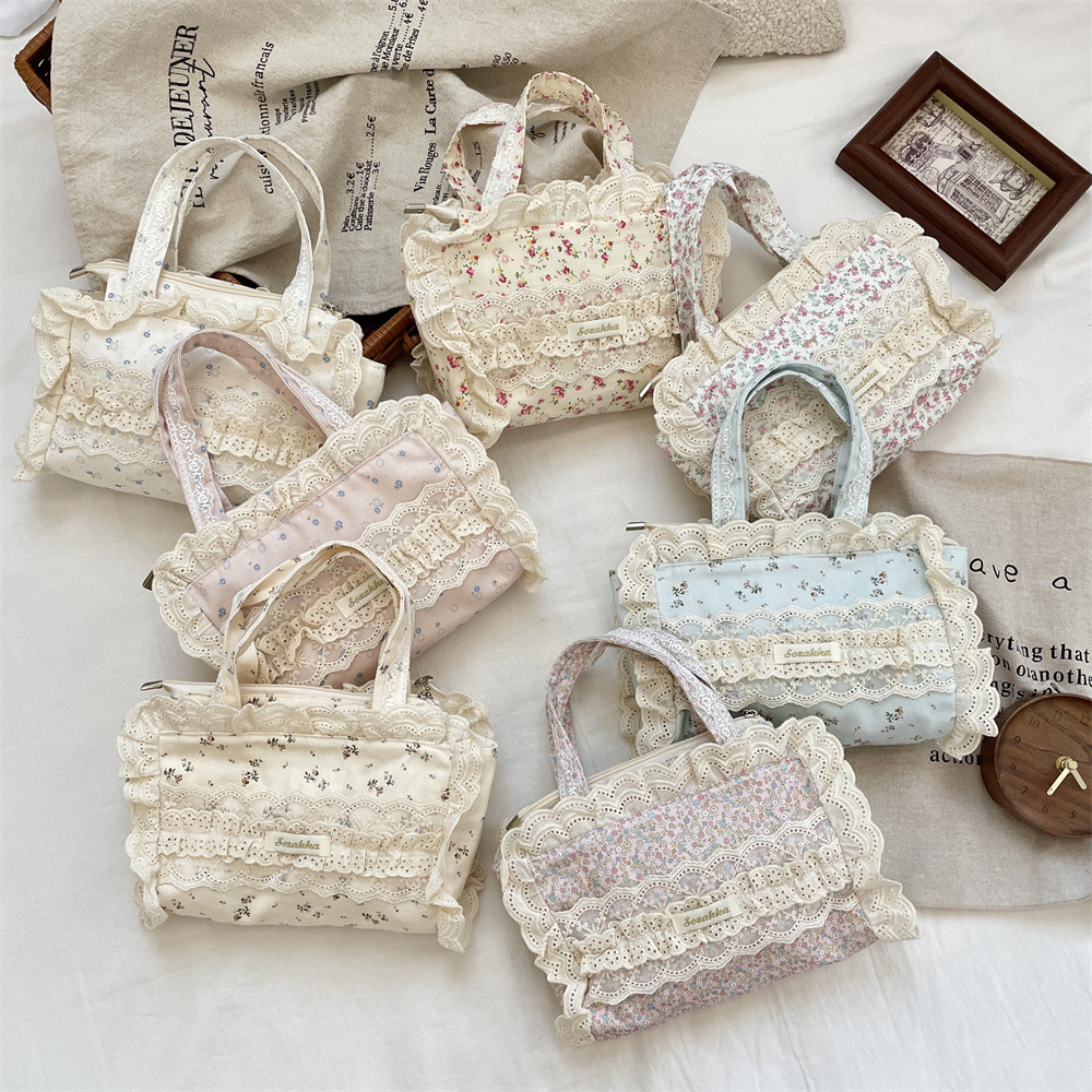 包包整个外面是蕾丝的,中间缎带面料,里面涤纶内衬