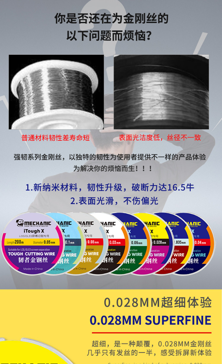 维修佬金钢丝 手机屏幕分离线切割 进口高硬度韧者0.028 0.03 200