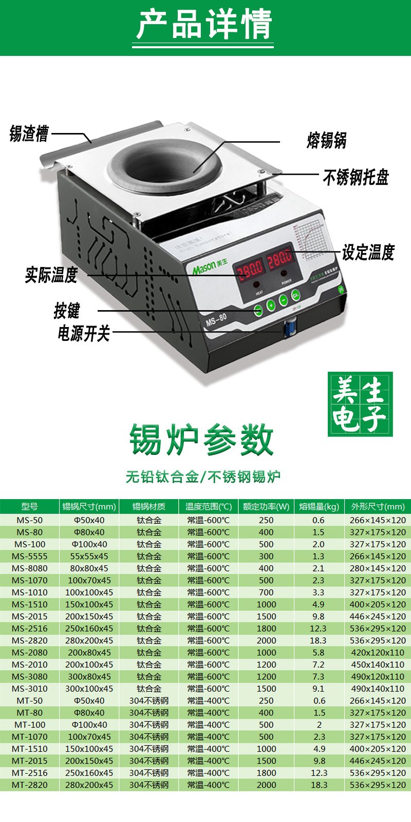 美生ms分体溶融錫炉溶接機チタン合金デスクトップ環境保護デジタル恒温知能錫炉