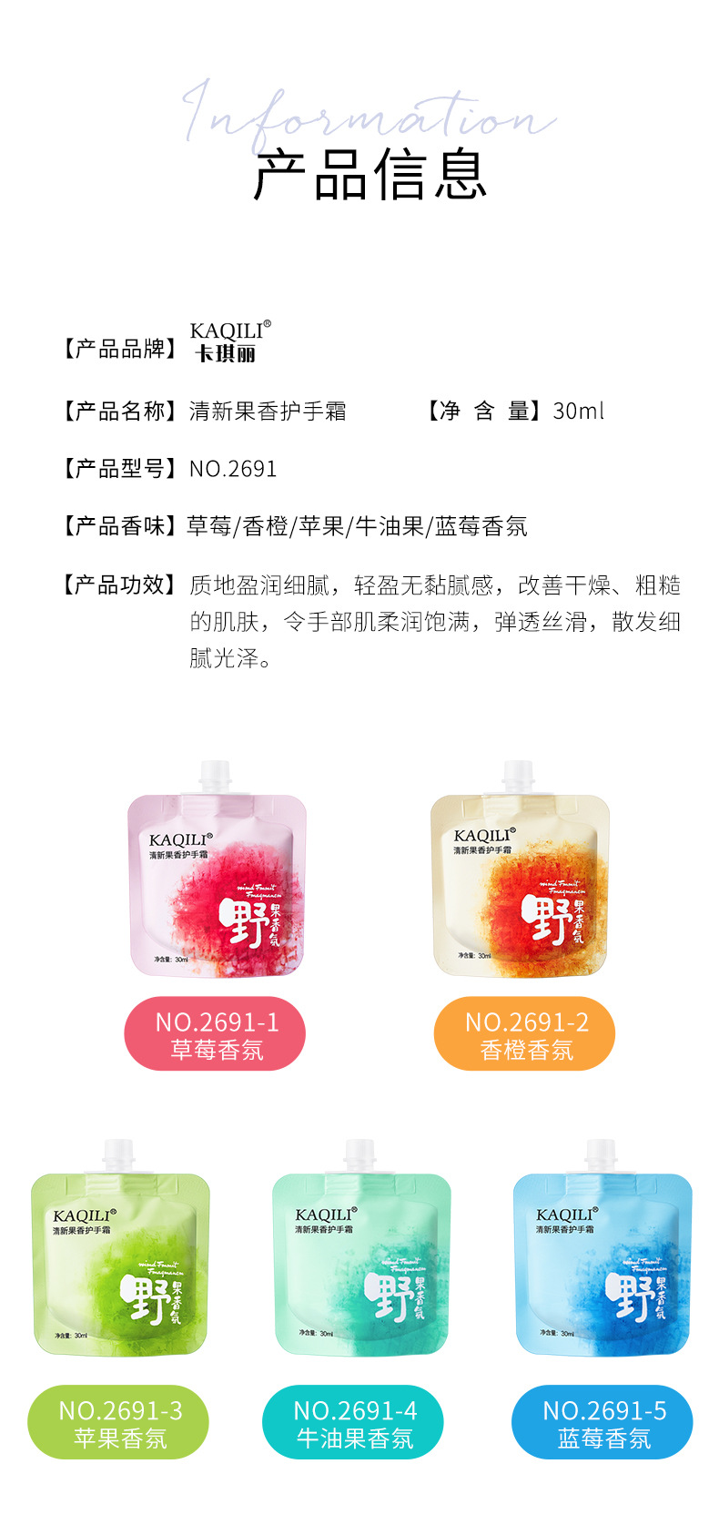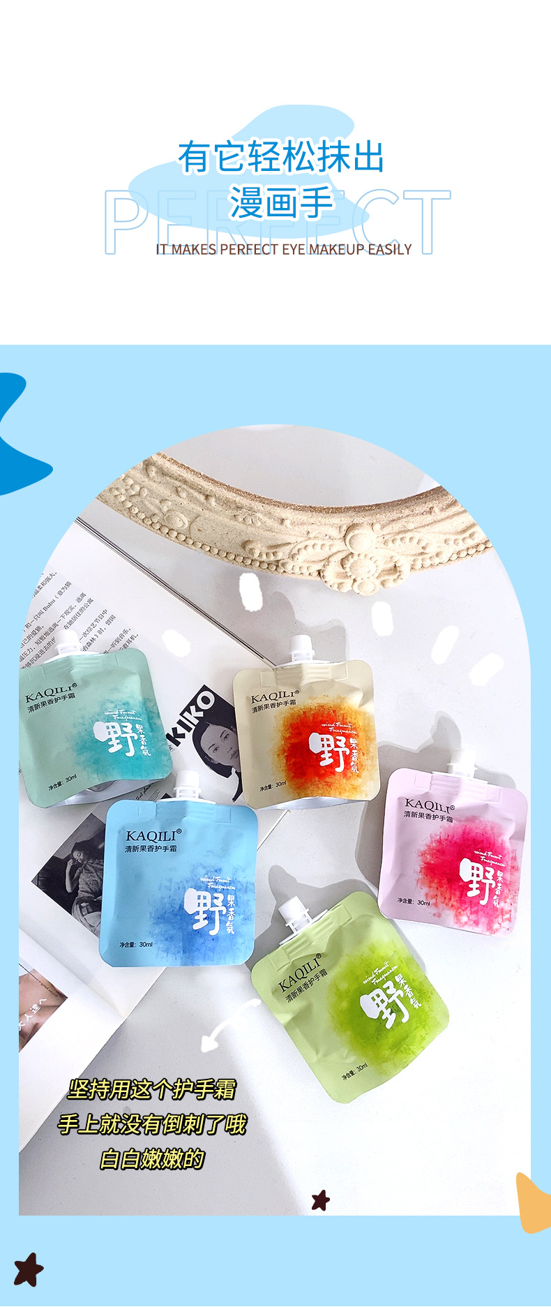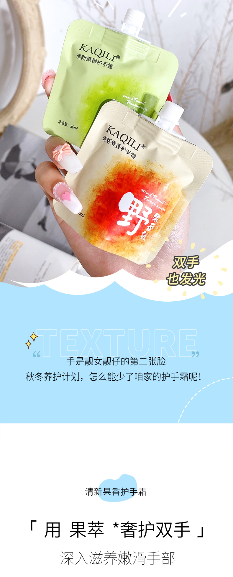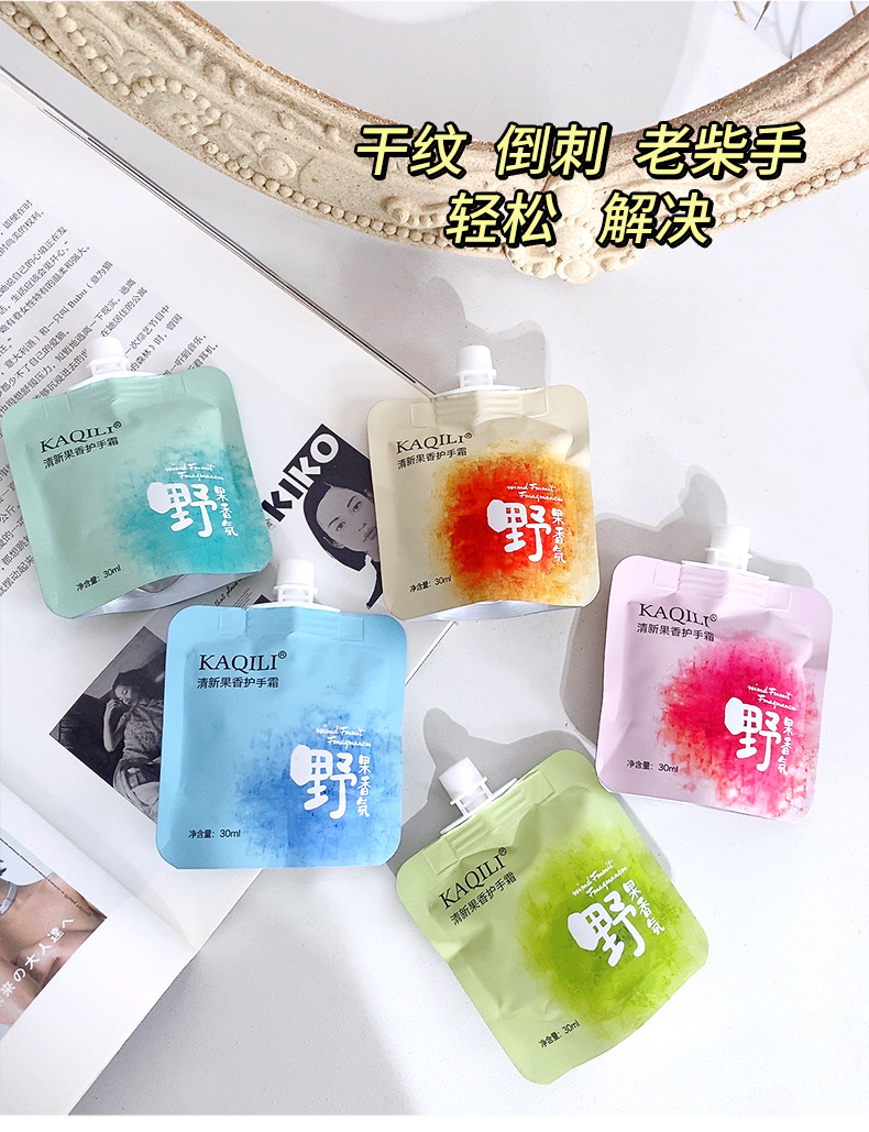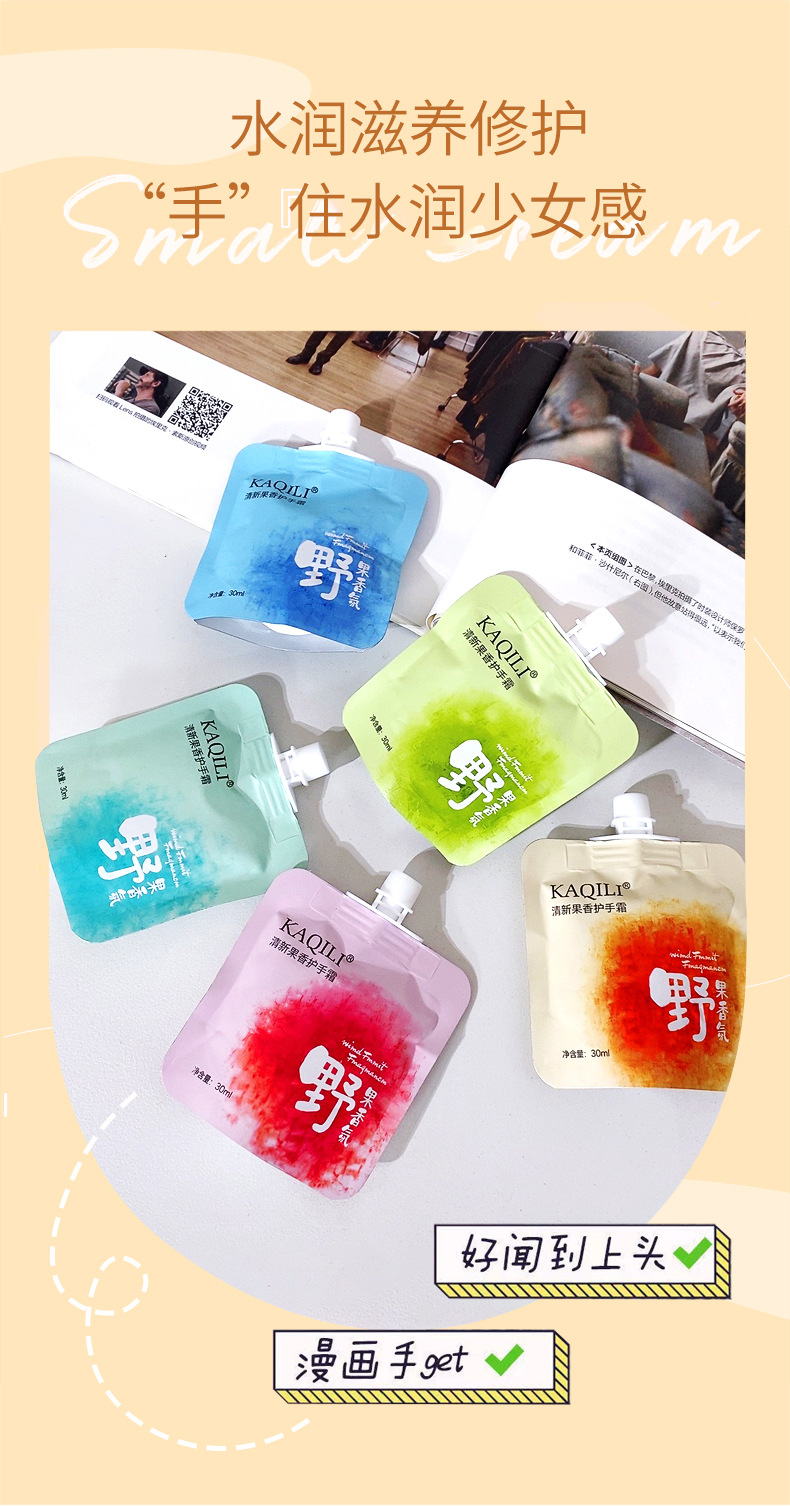 迷你吸嘴袋装护手霜 便携滋润补水保湿防干裂批发果味香氛护手霜