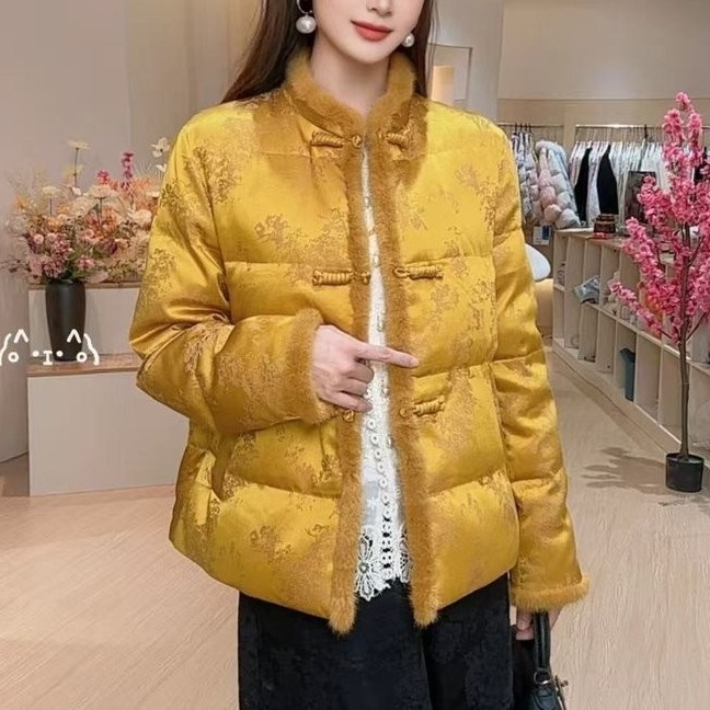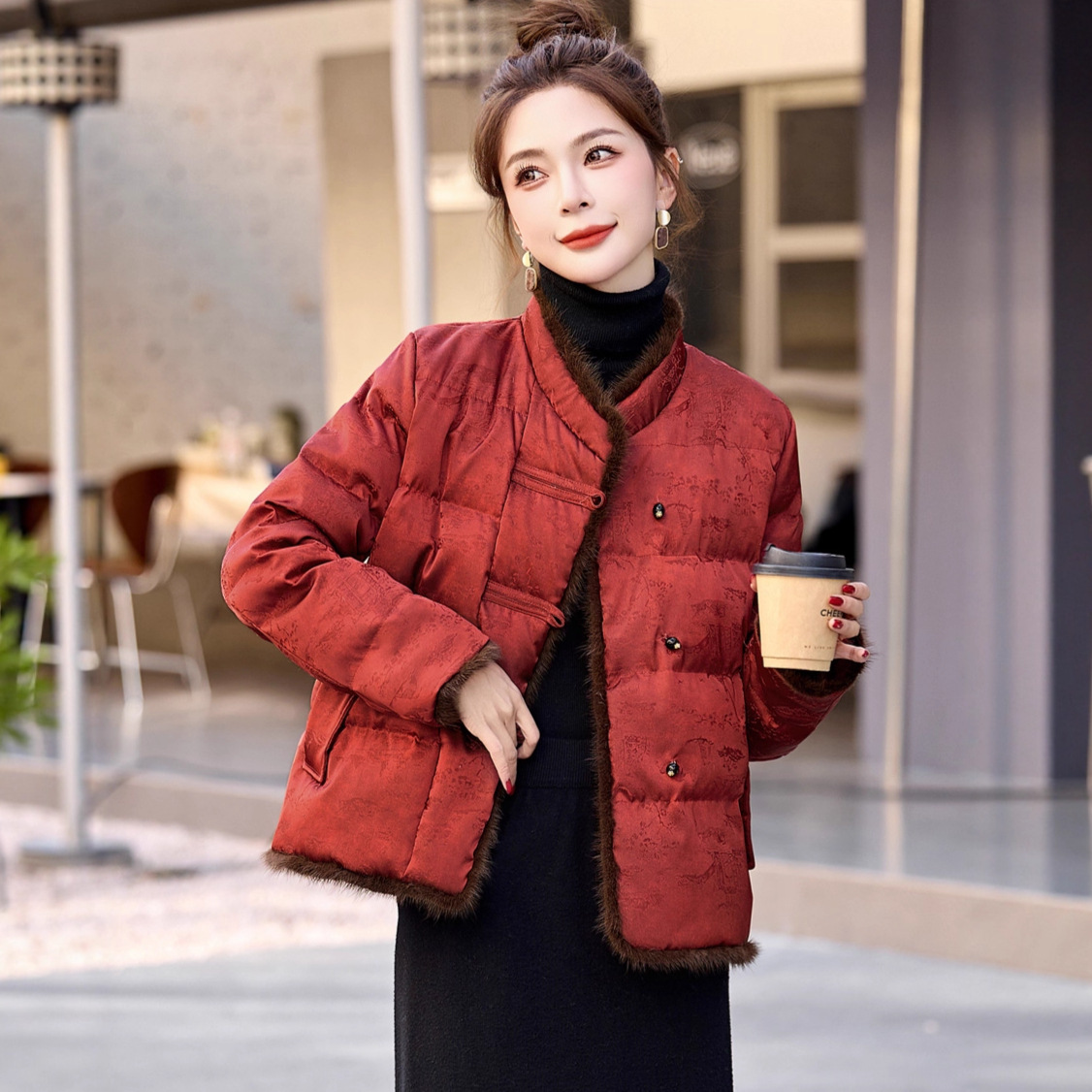 红色流行新中式羽绒棉服女2025冬季新款高端洋气国风唐装外套
