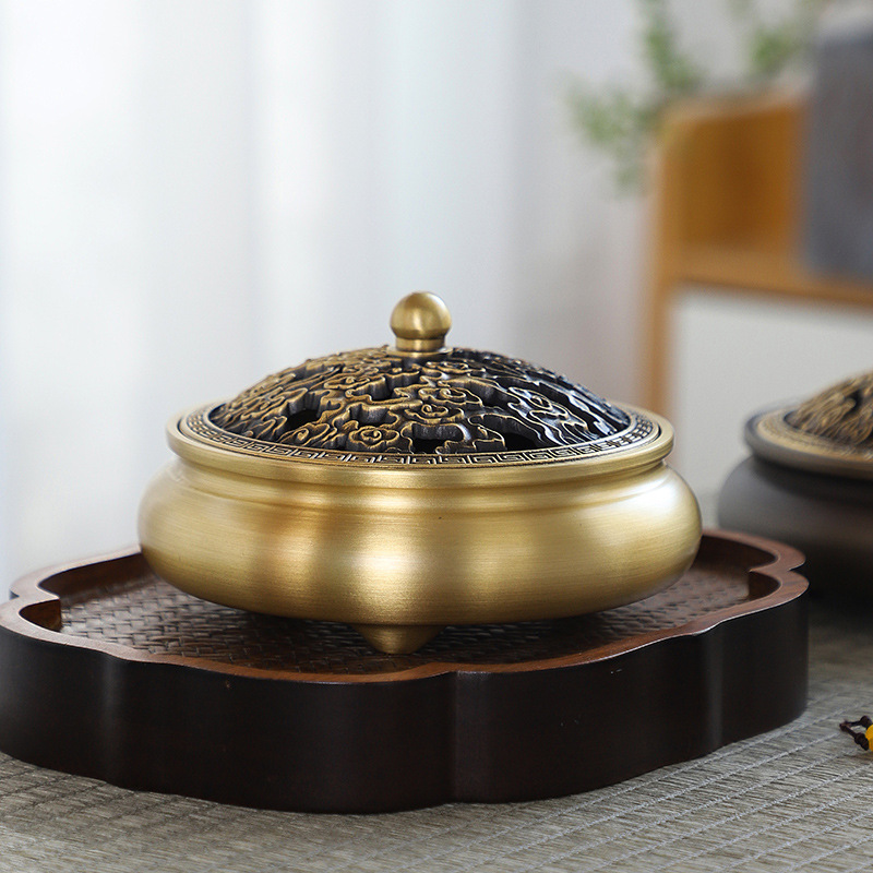香炉純銅薫香炉家庭用室内ホノルル安神盤香供仏茶道置物真鍮三足香薫炉