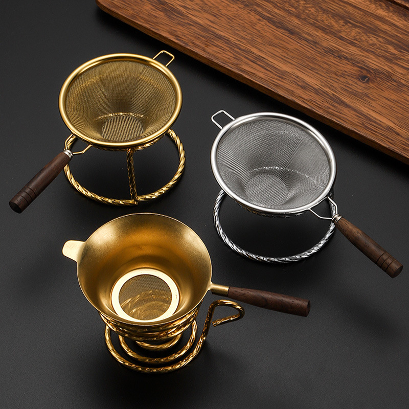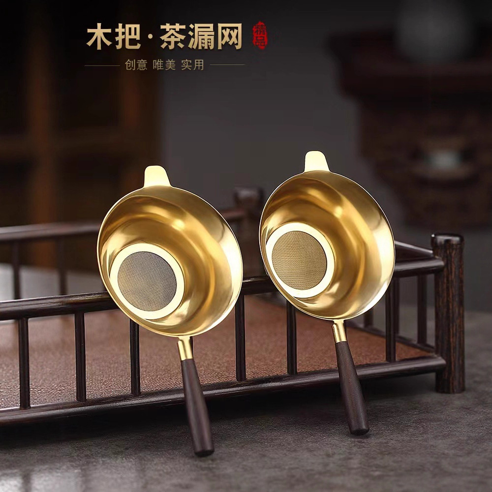 中国式ステンレス茶フィルター創意木柄茶漏れ茶器工夫茶器部品公道杯茶隔漏斗