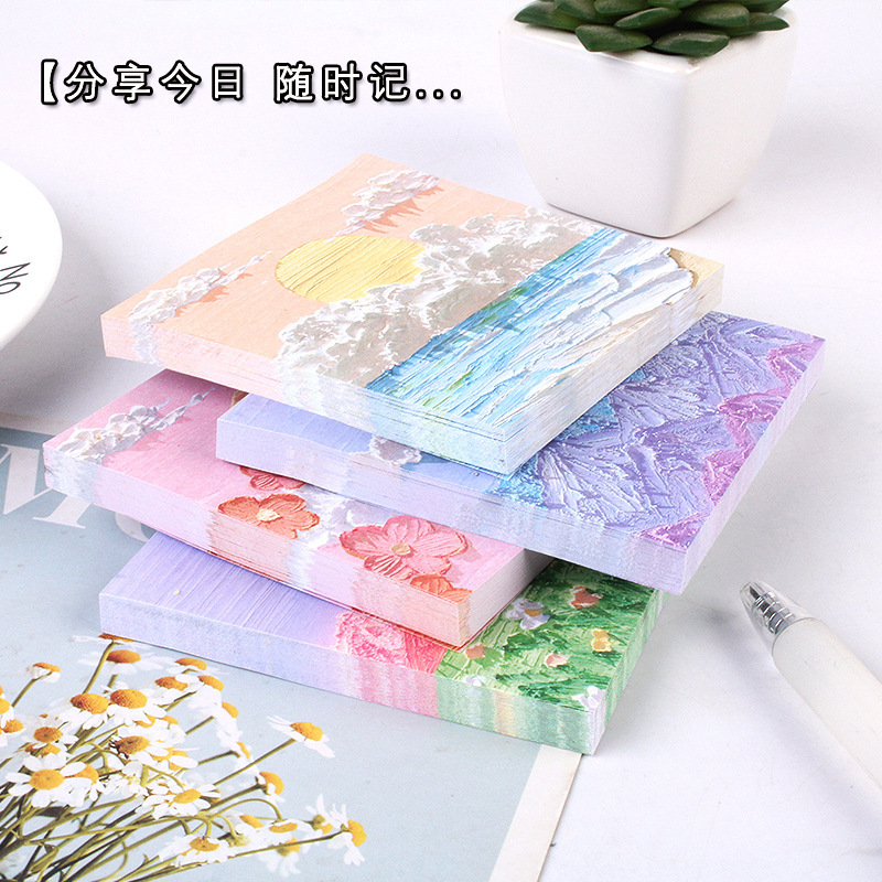 油絵風景ポストイット学生ノートラベルステッカーオフィスマーク付箋小冊子子供賞品ギフト