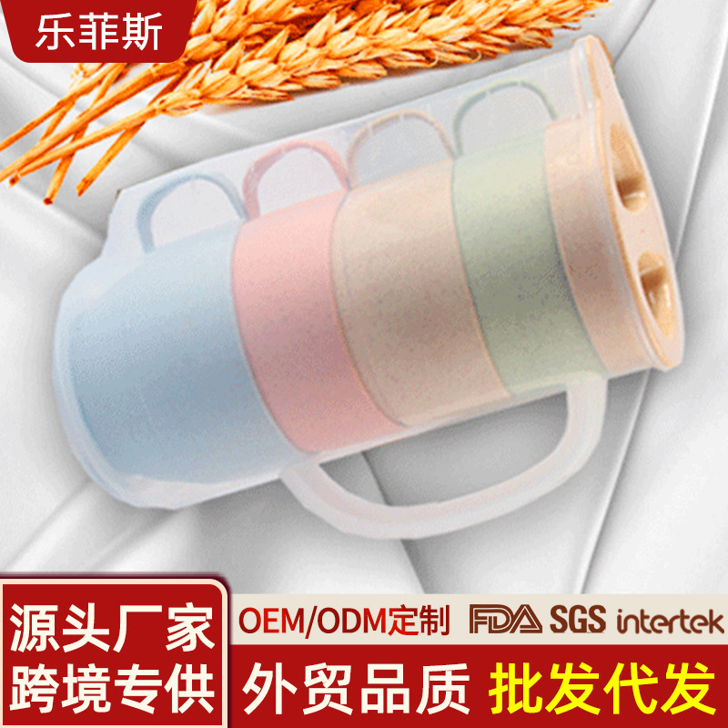 小麦わらコールドケトルカップセット家庭用大容量学生寮高温耐性透明冷水カップケトル