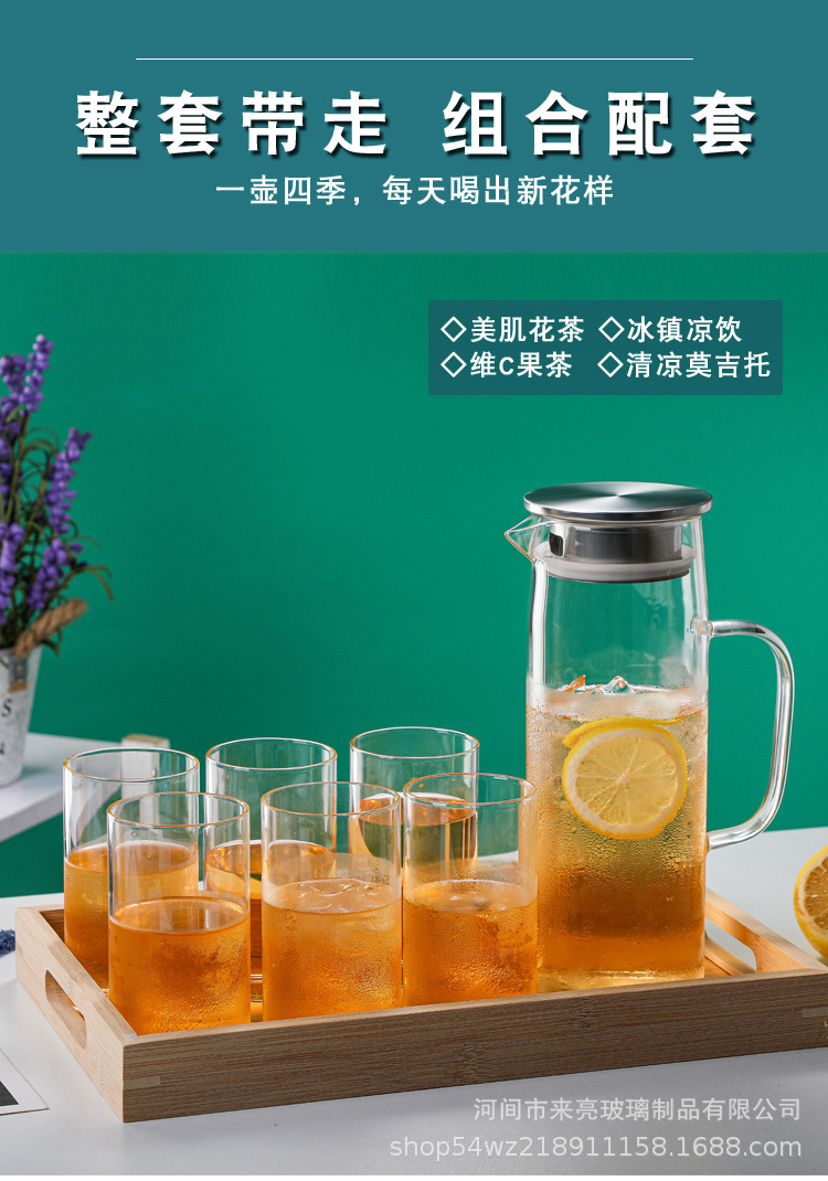 家庭用冷蔵庫冷水ポット大容量耐高温カップセット冷泡ティーポット冷水ポットガラス高級感