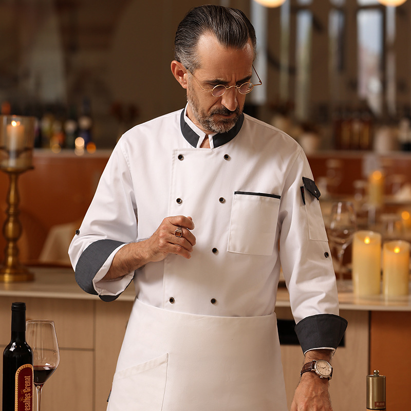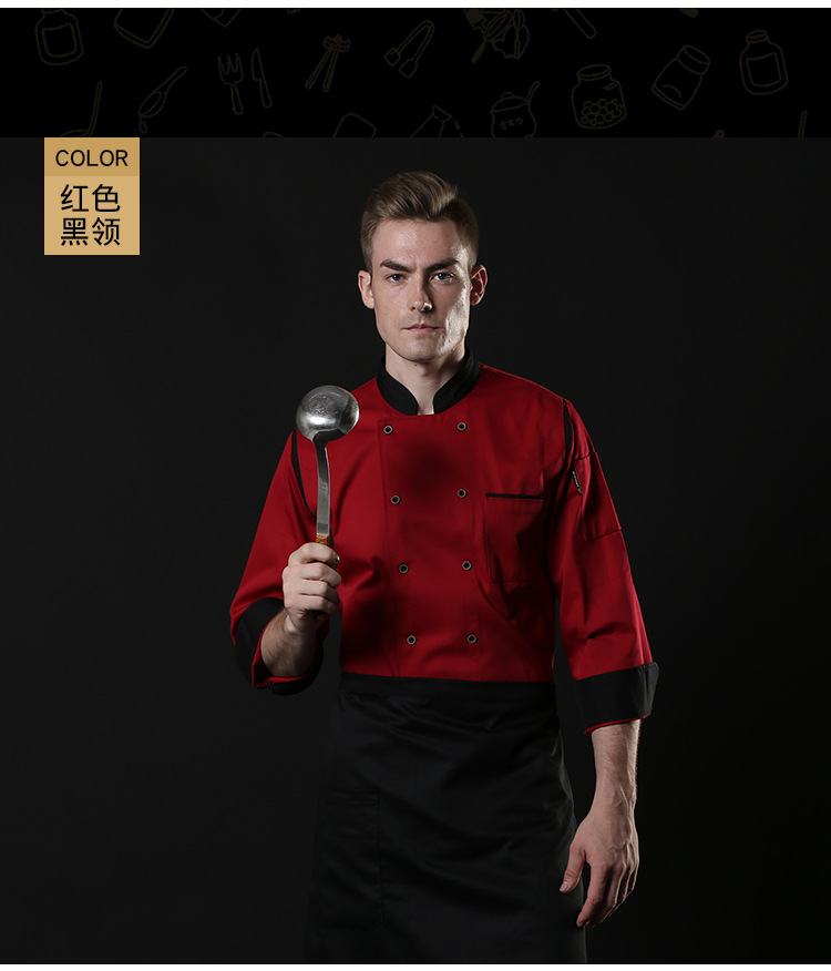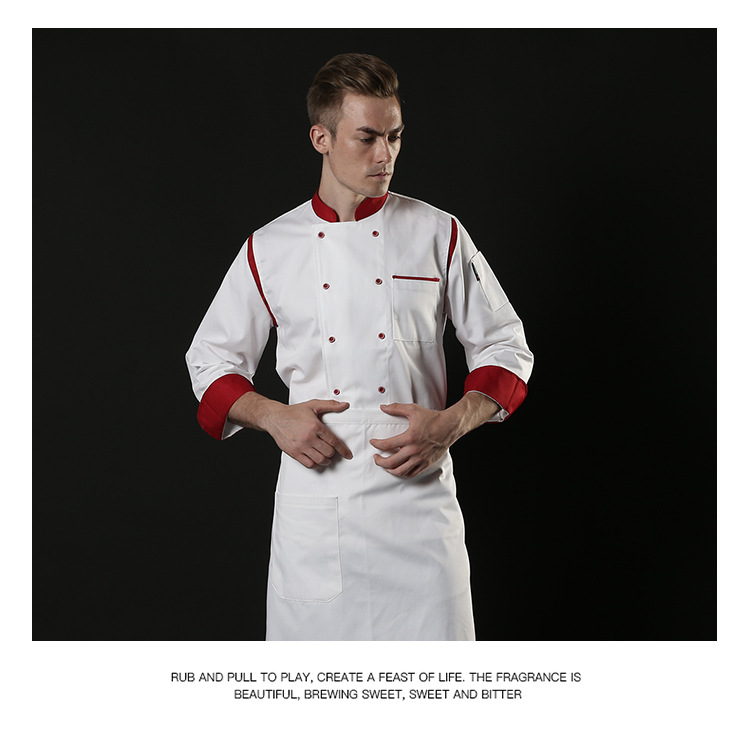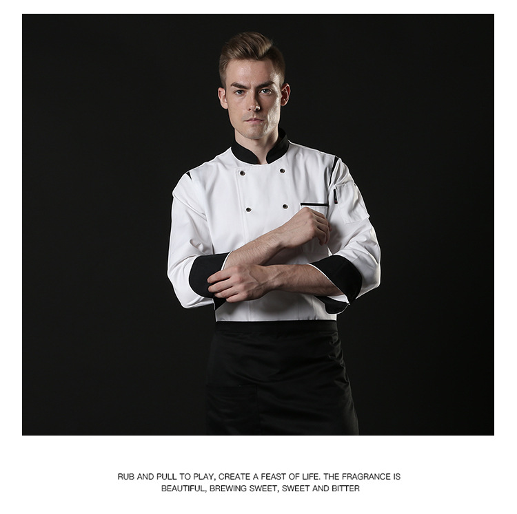 シェフ作業服長袖秋冬服ホテルキッチンレストラン食堂レストランシェフ服男女オーダー