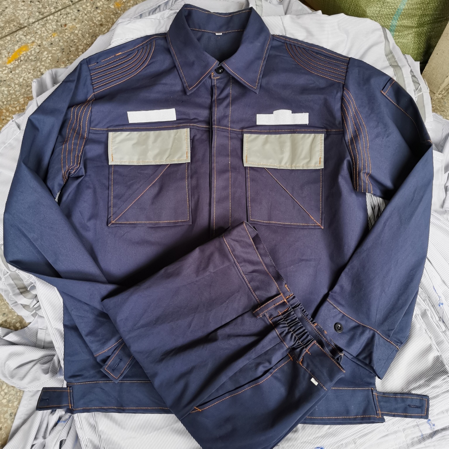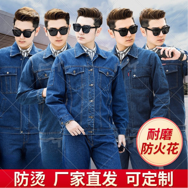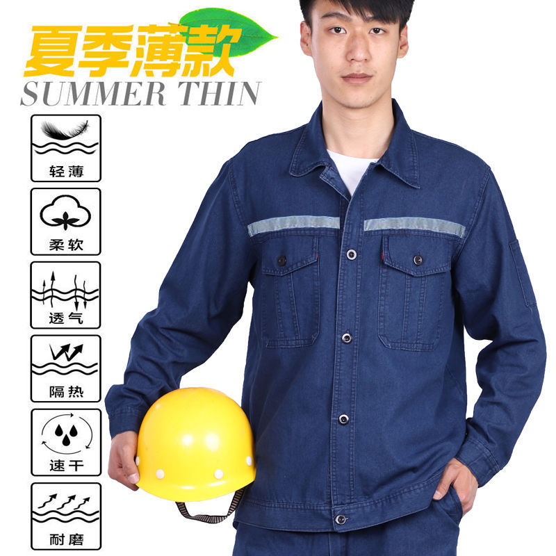 夏の薄いデニムの男性溶接工服電気溶接服の自動車修理セットの電力工事服のデニム作業服