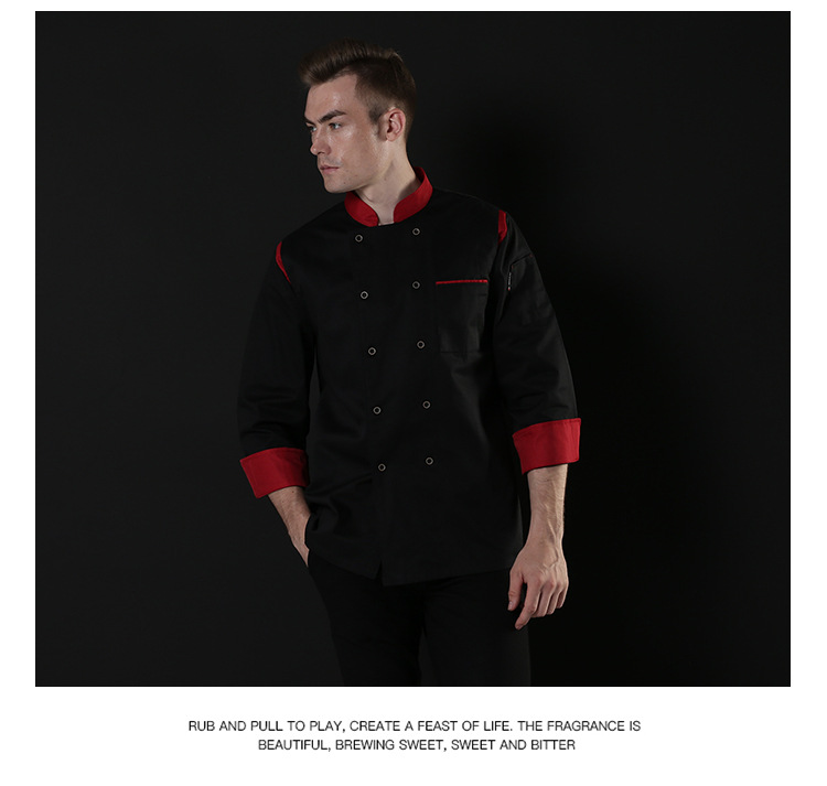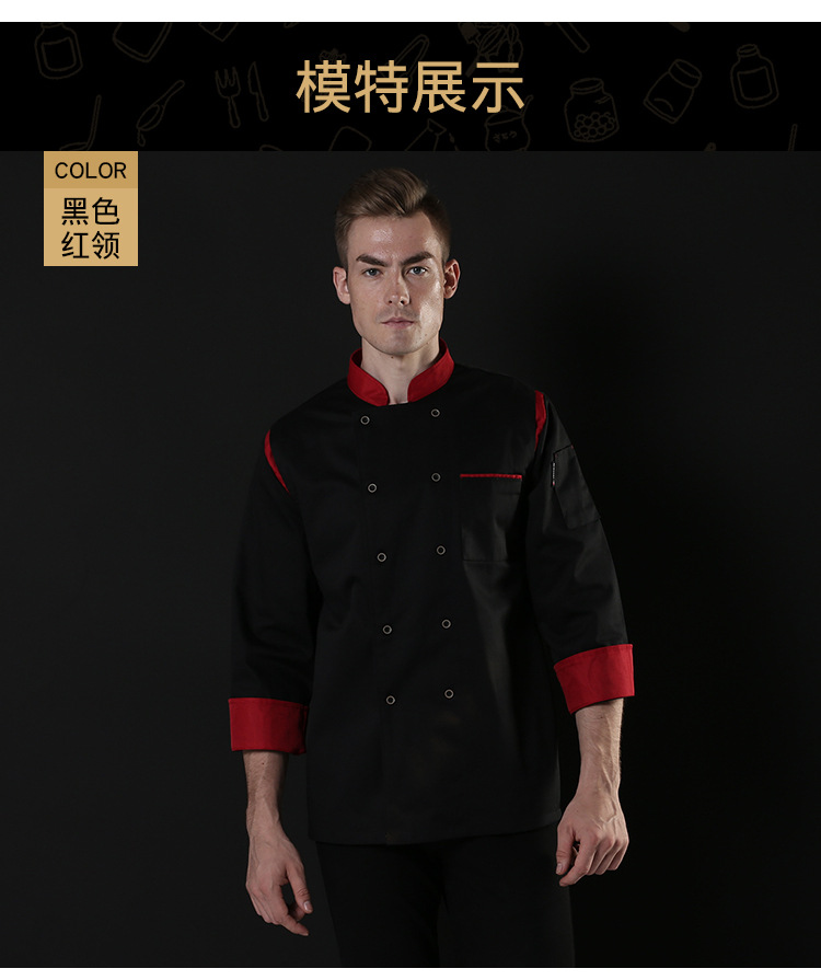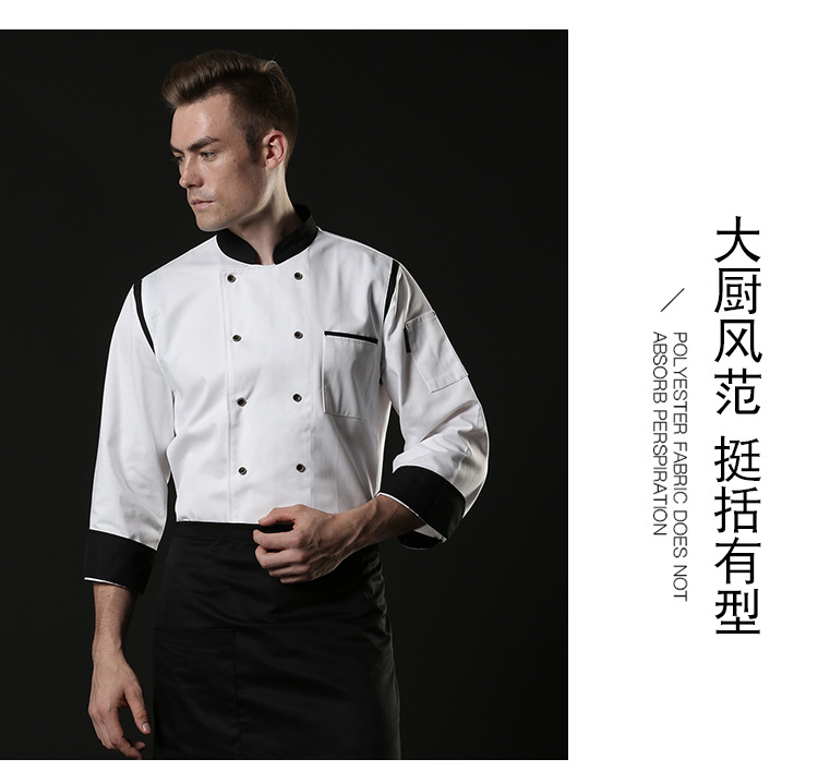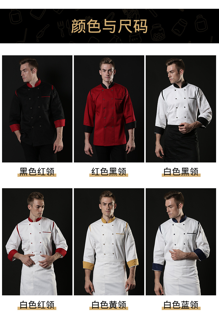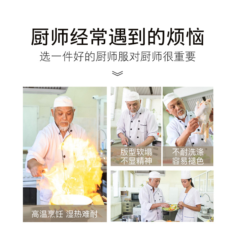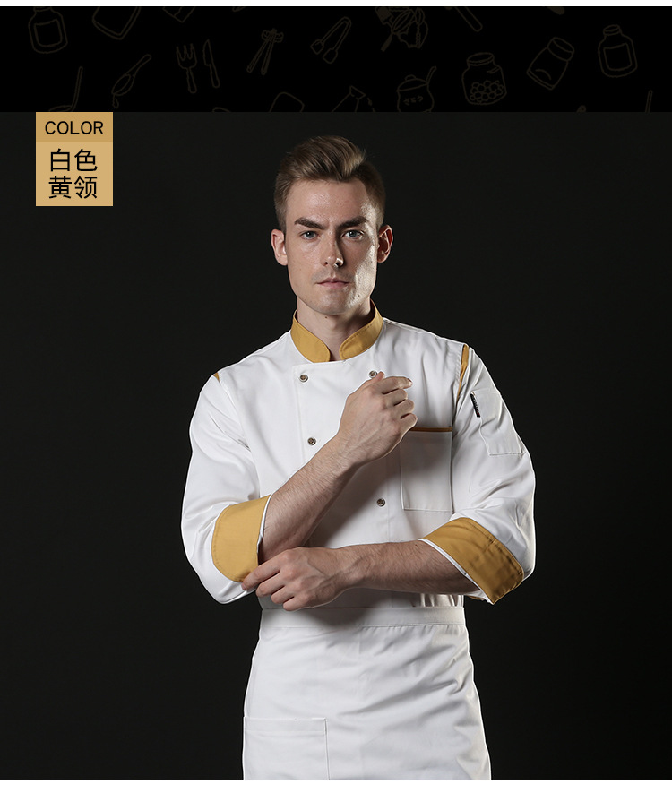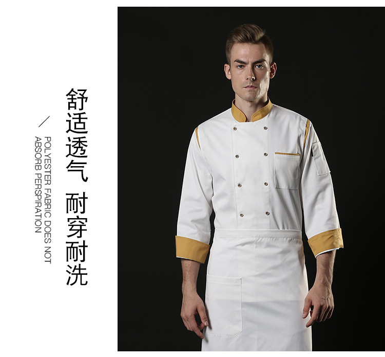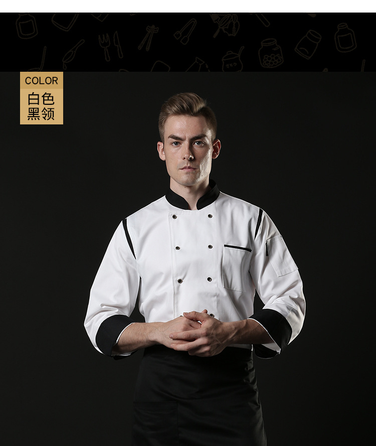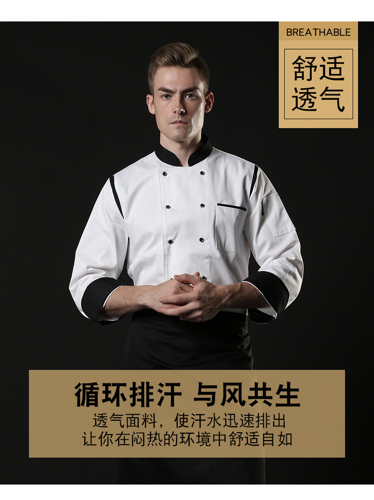 品質通気吸汗コック服ホテルレストラン工衣秋冬長袖コック服刺繍印字ロゴ