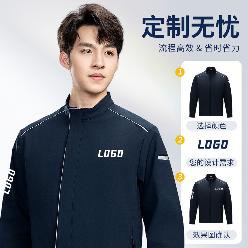 秋と冬のスタンドカラー防水反射ストリップジャケットハイエンド作業服ジャケットメンズカスタムロゴ企業作業服カスタマイズ