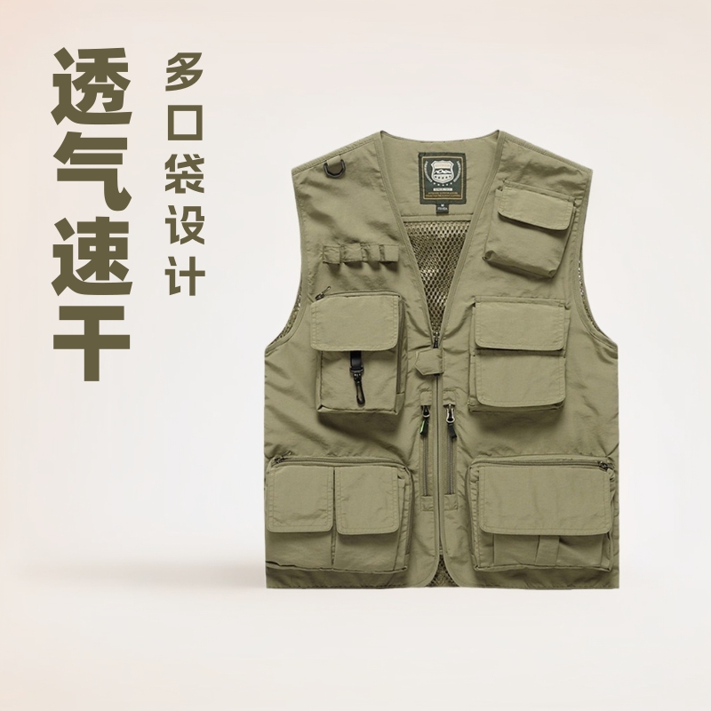 アウトドアカジュアルファッション多ポケットベストメンズ撮影用ベスト速乾通気性多機能ベスト作業服カスタム