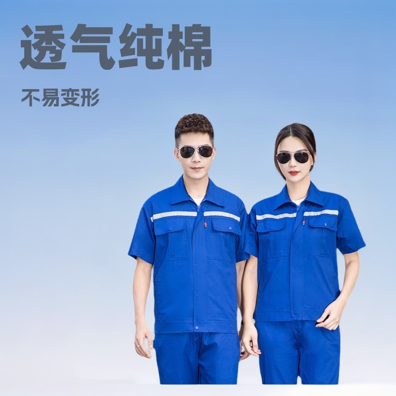 夏半袖純綿薄手作業服セット通気性純綿反射作業服労働保険服男性カスタム印字