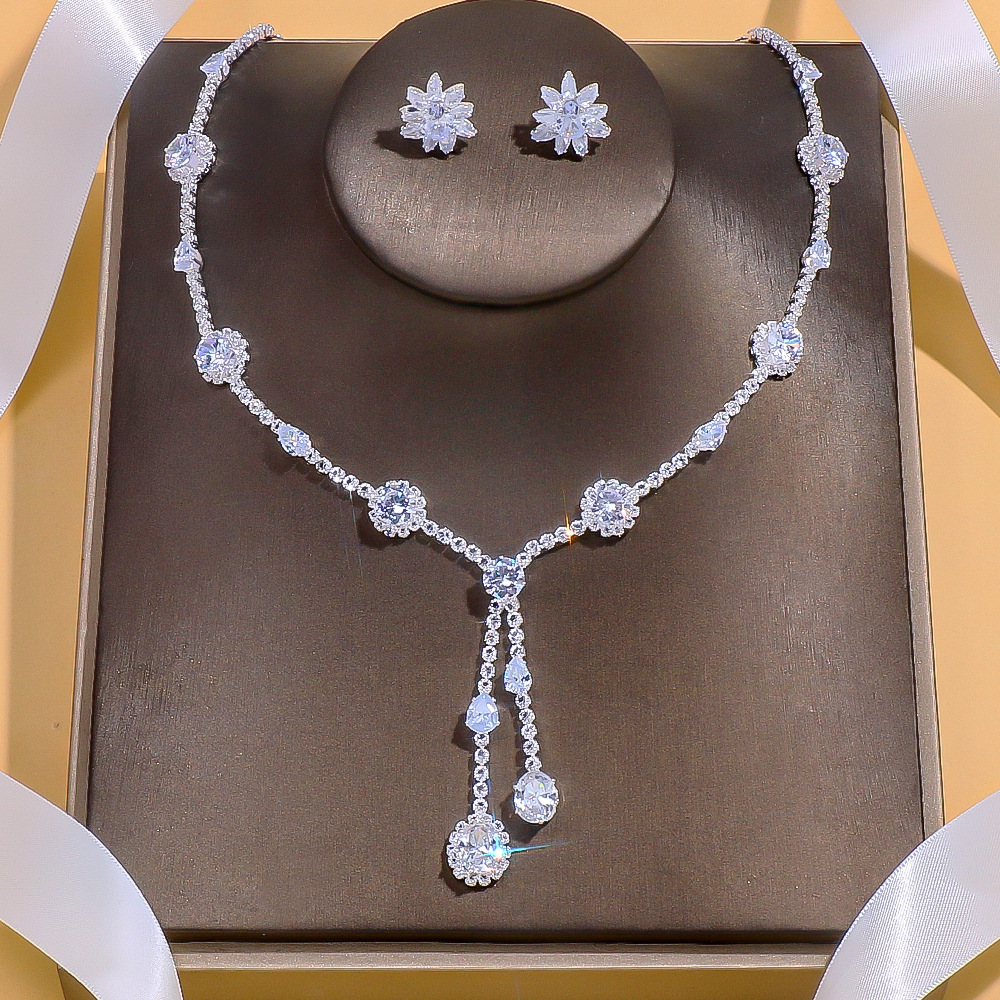 高級結婚式ジルコンジュエリーセット女性花嫁アクセサリーシンプルなイヤリングネックレスセットjewelry set