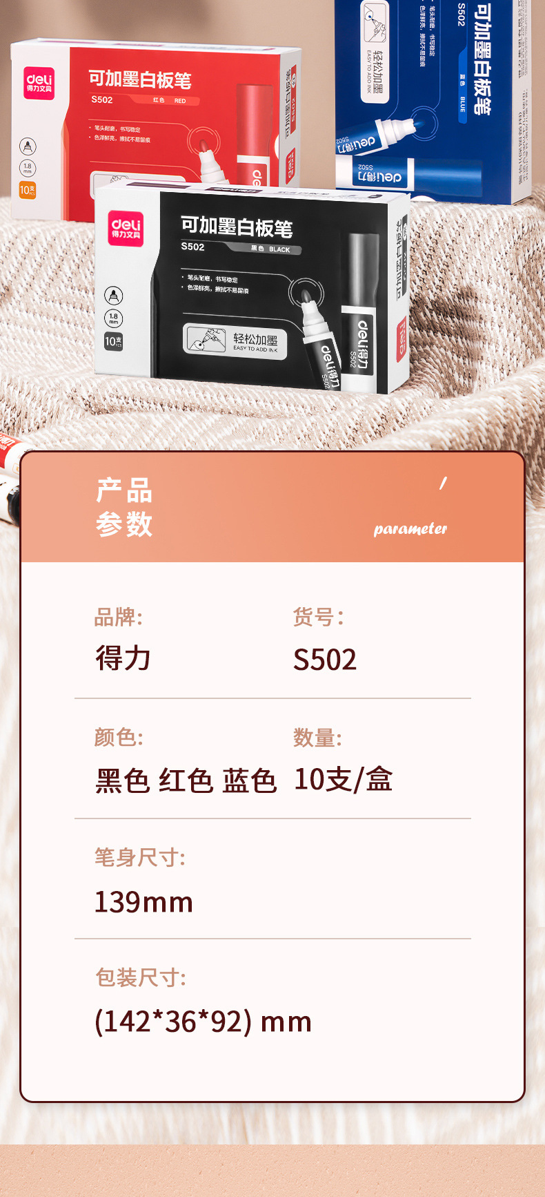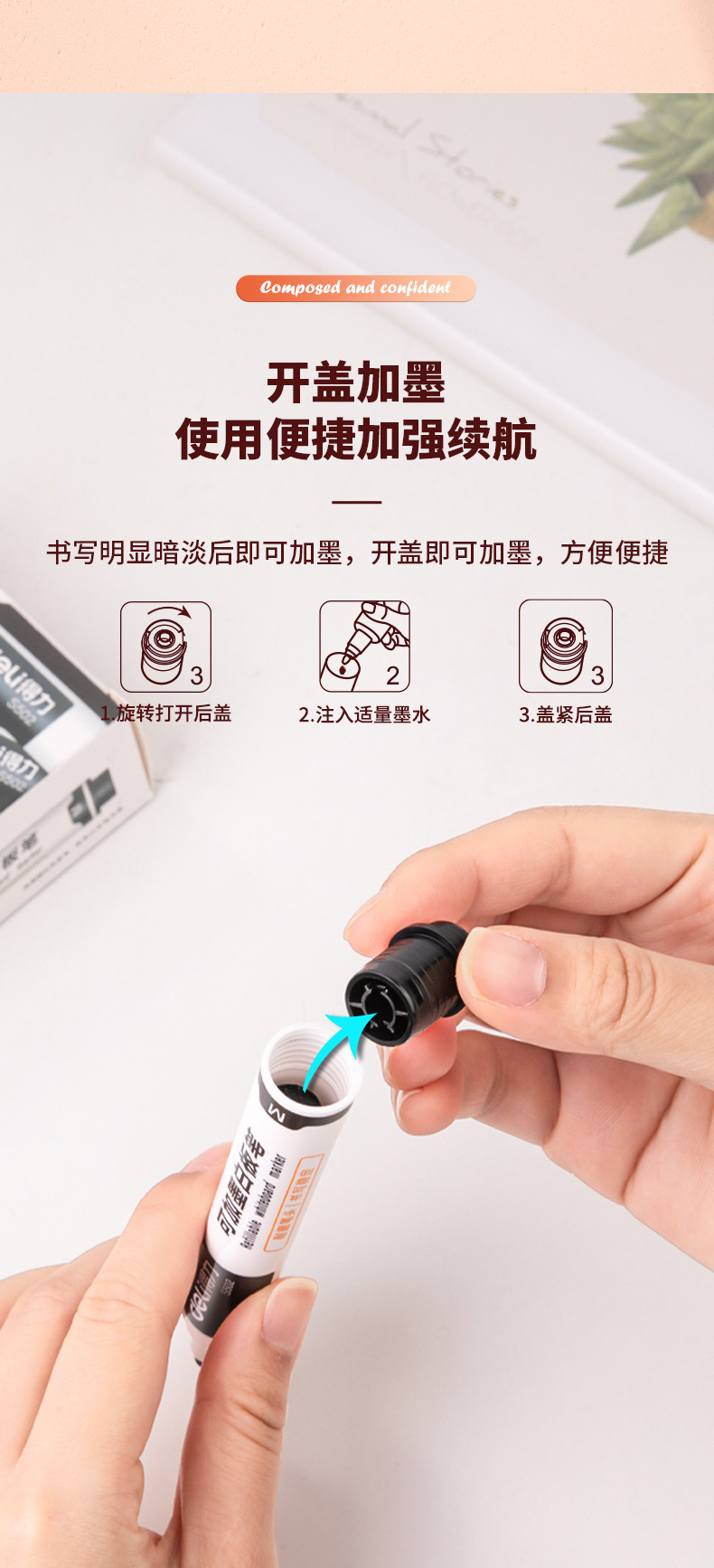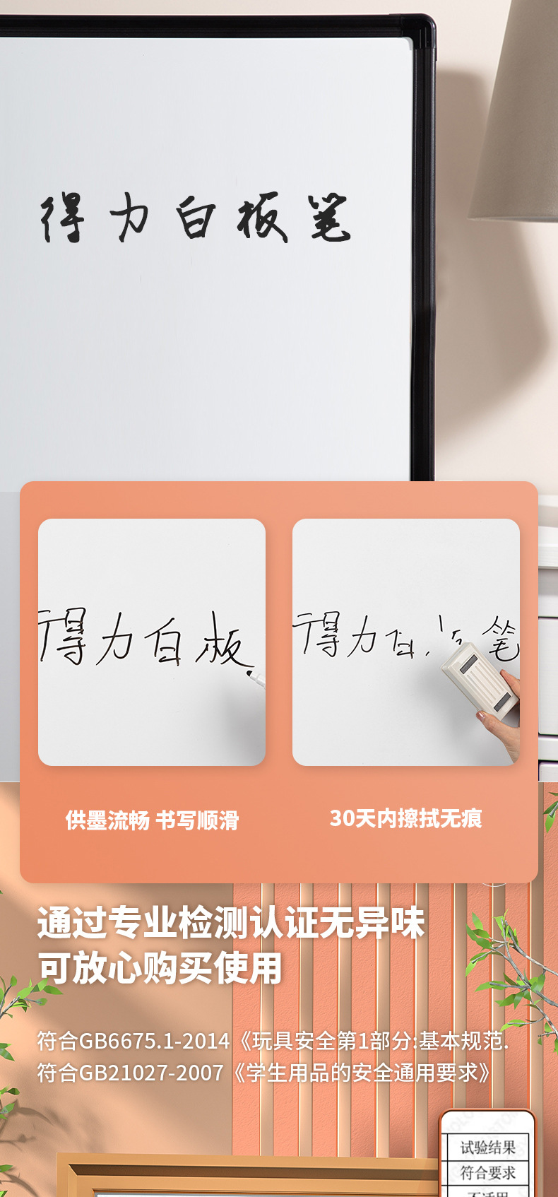 得力白板笔可加墨水大容量可擦粗头大号儿童无毒黑板笔教师用水性