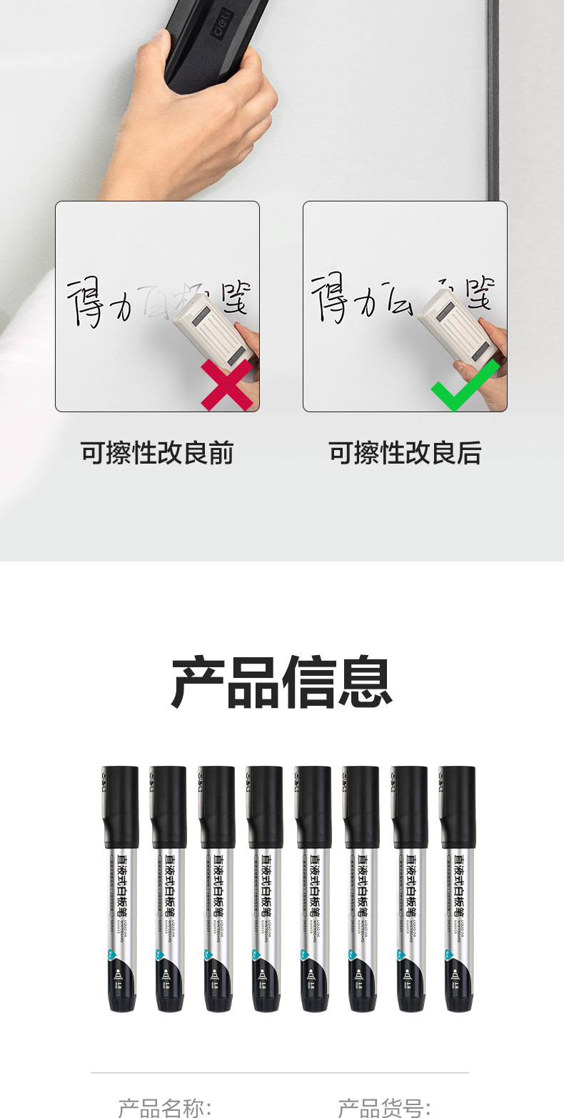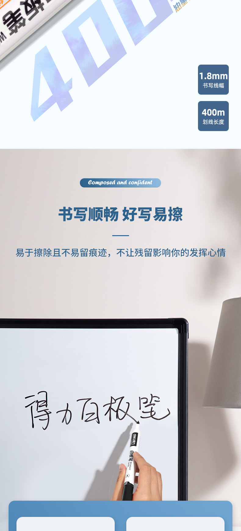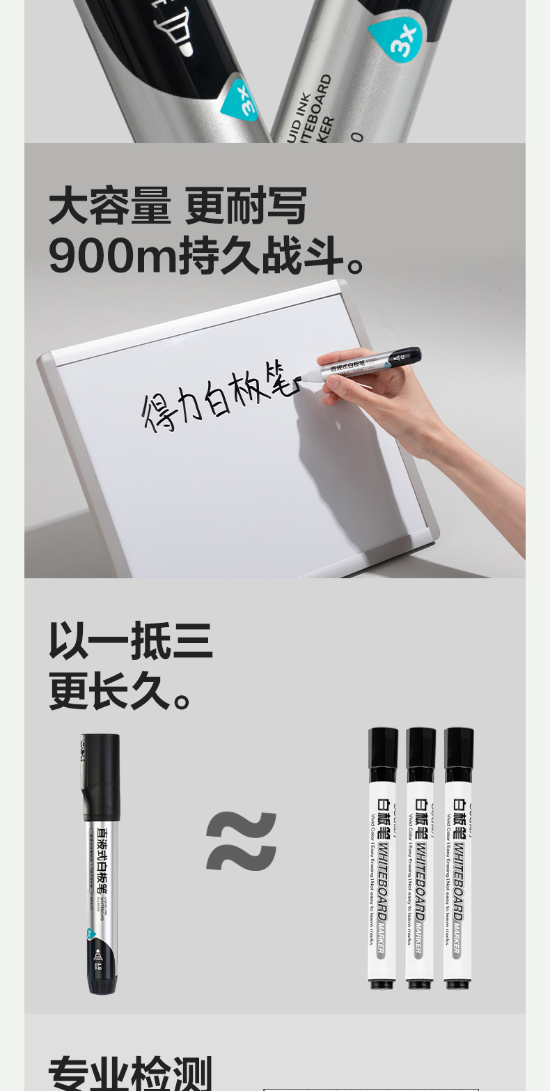 得力白板笔可加墨水大容量可擦粗头大号儿童无毒黑板笔教师用水性