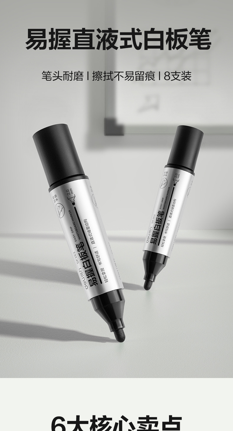 有力6817白板ペンは、書きやすいマーカーを拭くことができる教師のオフィス用水性ペン白板用ペン